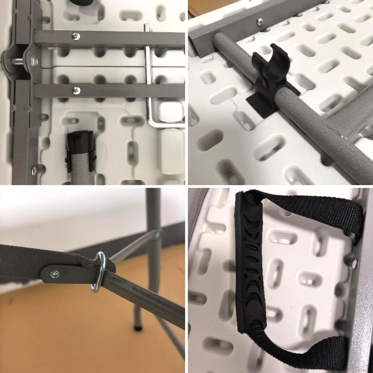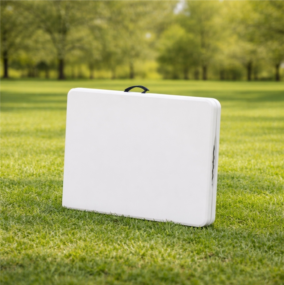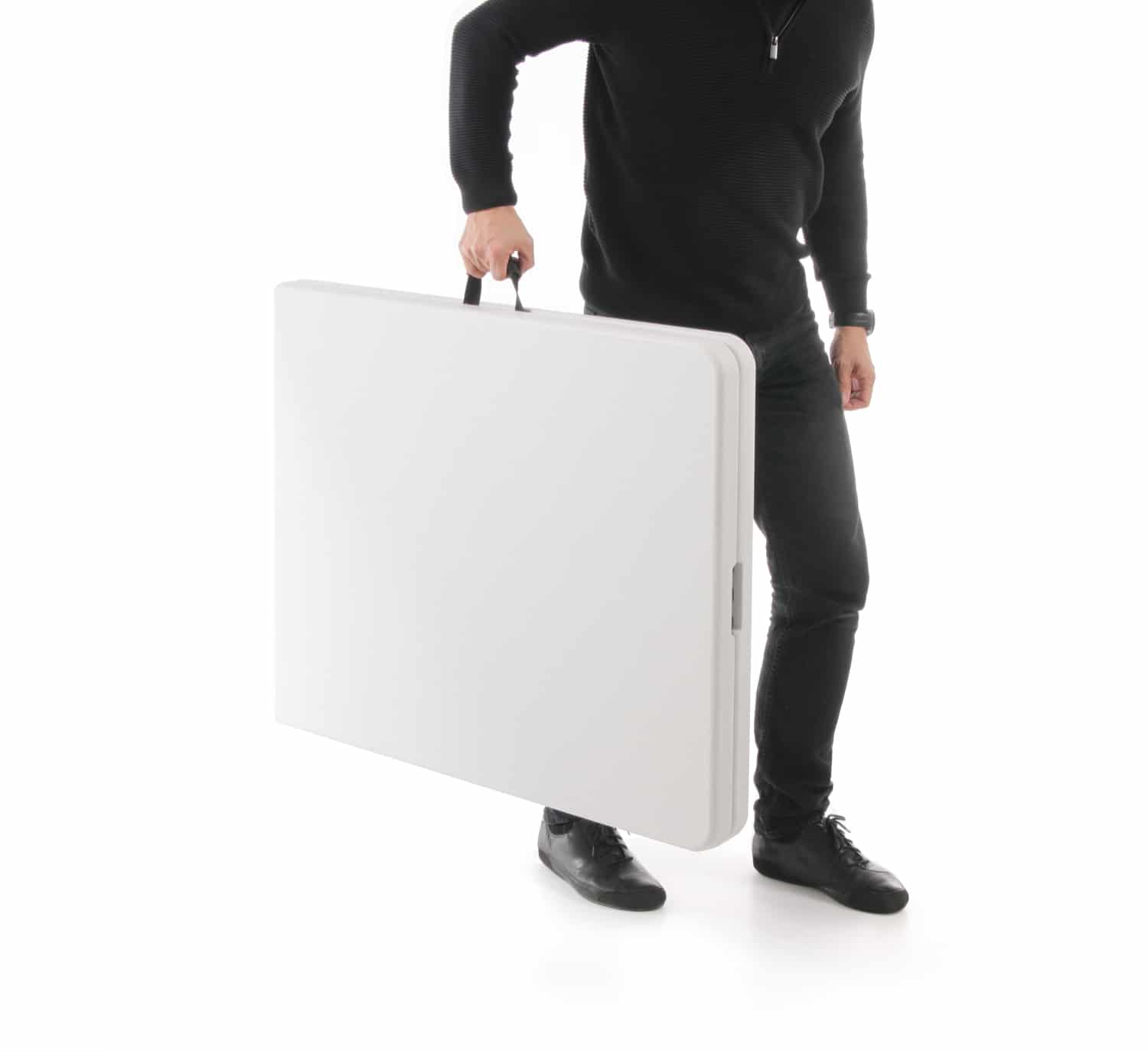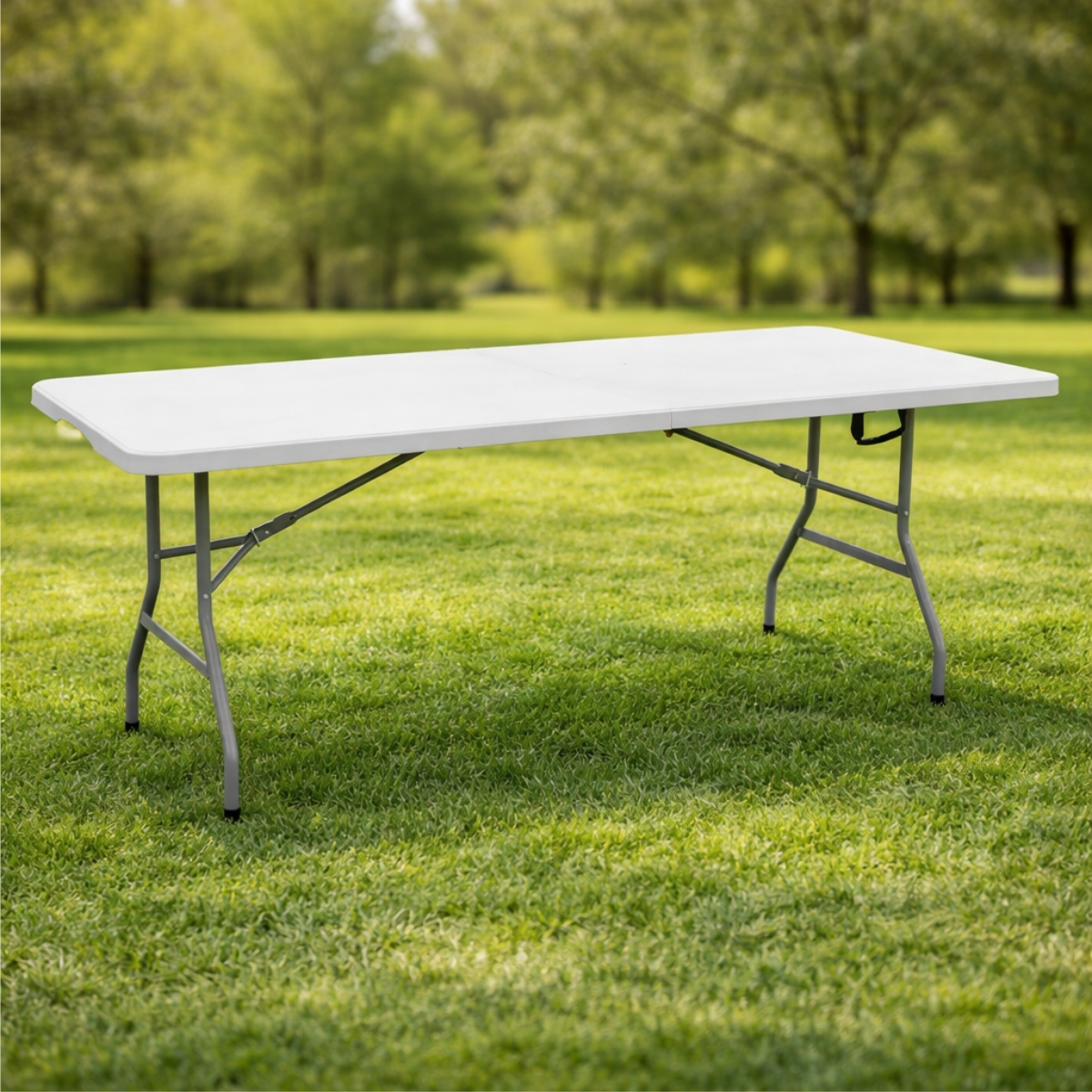 Cateringový stůl, jednoduchý a pohodlný na používání, vhodný pro různé akce. Deska stolu je vyrobena z odolného HDPE polyetylenu, který je odolný vůči povětrnostním vlivům. Díky tomu je vhodný pro použití doma i na zahradě. Speciální zajišťovací mechanismus zabraňuje nechtěnému složení stolu. Rozměry desky umožňují pohodlné použití pro 6 osob. Po složení se stůl snadno přenáší a při skladování nezabere mnoho místa.