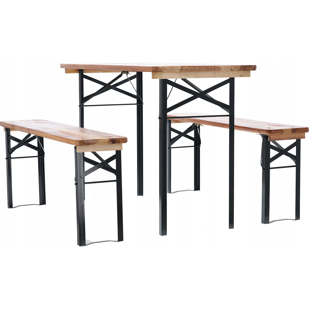 - Snadné skladování – kovové nohy stolu a lavic lze zcela složit, čímž vznikne plochý tvar vhodný pro uložení ve skladu nebo v garáži. Jednoduché rozložení a složení setu oceníte při sezónním používání nebo častém přenášení