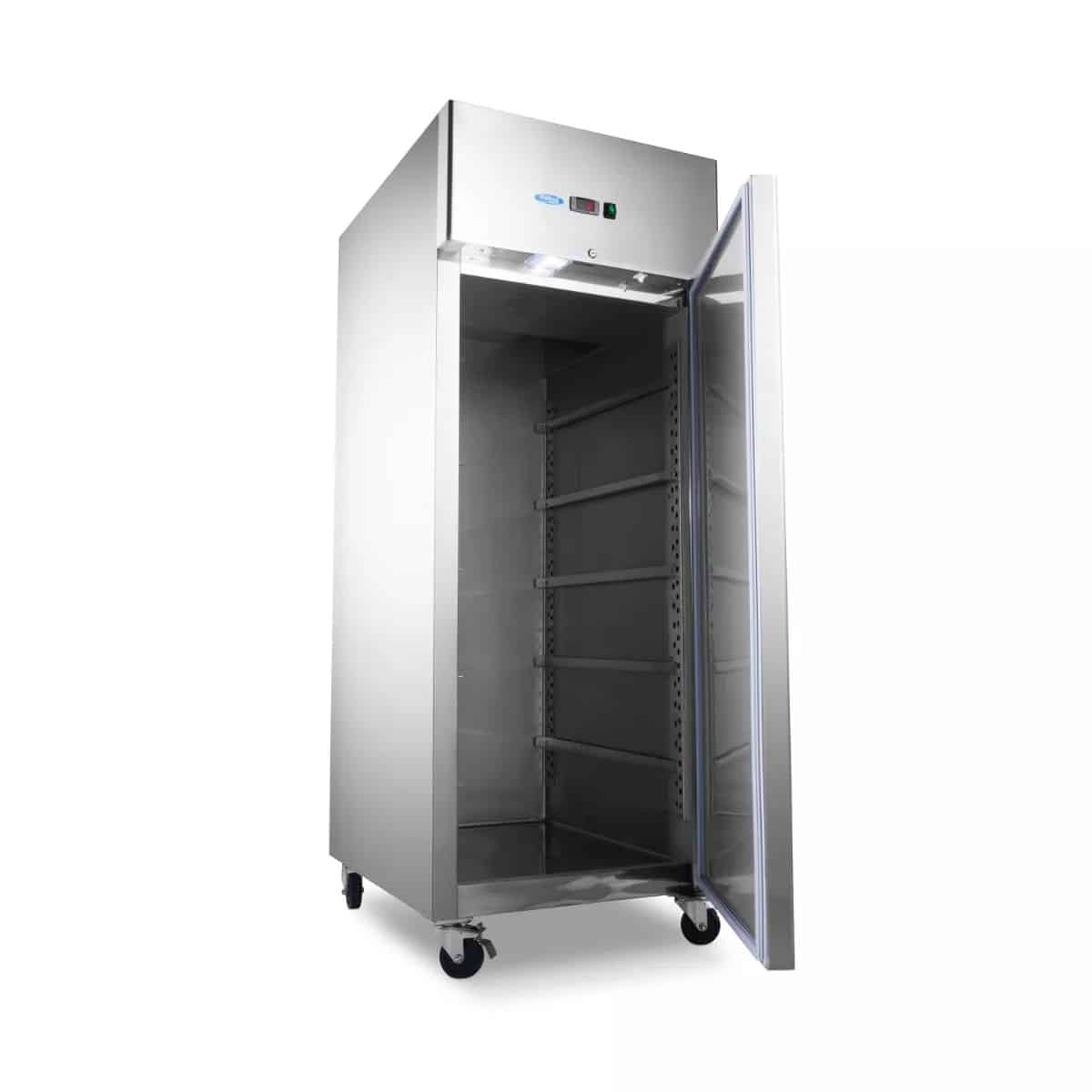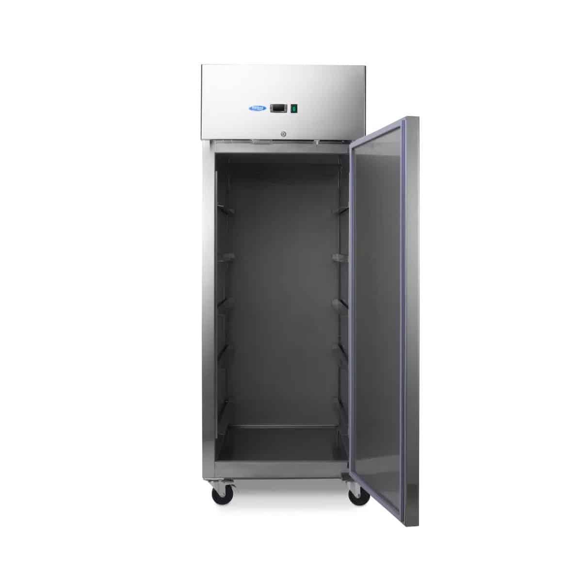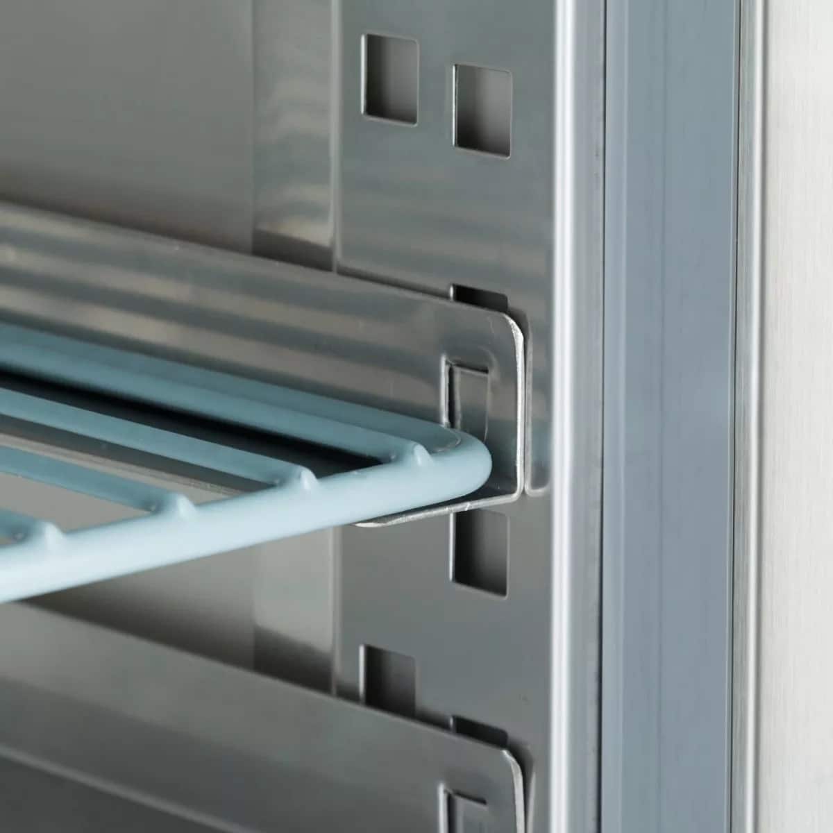 Tato výkonná lednice se ideálně hodí pro použití v pekárnách. S objemem 800 litrů udržíte spoustu produktů chladných. Dvířka jsou samozavírací a mají antibakteriální gumové těsnění. Do této lednice můžete umístit až 10 výškově nastavitelných polic. Má 10 polic k uchycení polic 60 x 80 cm. Tyto lze objednat samostatně. Kromě toho je lednice uzamykatelná a na dva klíče.