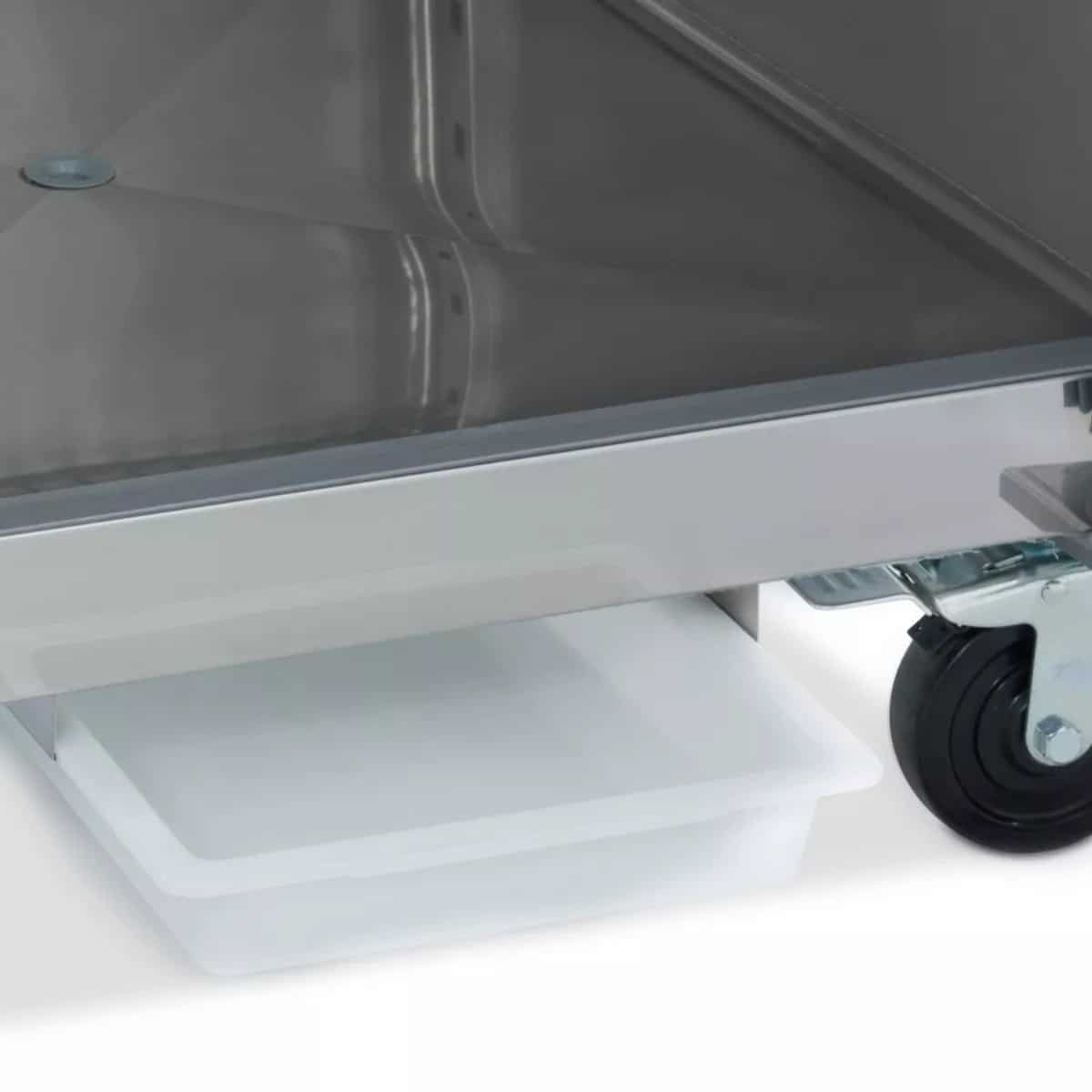 - Chcete přemístit lednici pekárny na jiné místo v pekárně? Toho lze snadno dosáhnout díky čtyřem kolům, z nichž dvě jsou brzděné.