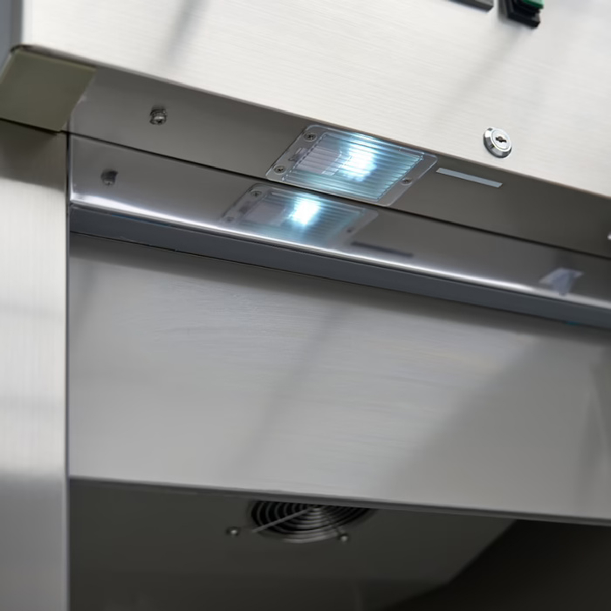 - Efektivita – ventilované chlazení s integrovaným ventilátorem zajišťuje rovnoměrnou cirkulaci studeného vzduchu v celém prostoru, eliminuje teplotní výkyvy a garantuje stabilní chlazení potravin