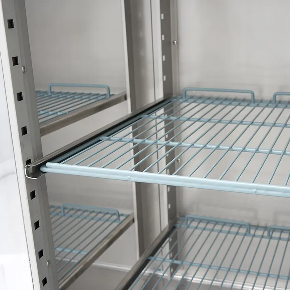 - Flexibilita – šest výškově nastavitelných polic GN 2/1 umožňuje přizpůsobit vnitřní uspořádání podle typu skladovaných surovin nebo gastronádob
