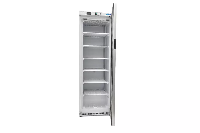 Tato profesionální mrazící skříň je vybavena elektronickým regulátorem teploty a digitálním displejem. To umožňuje snadné odečítání a nastavení teploty. Nabízí široký rozsah teplot pro účinné zmrazení výrobků. Je vybavena funkcí rychlého zmrazování, která umožňuje rychle dosáhnout požadované teploty. Automaticky spouští cyklus odmrazování každých šest hodin, čímž zajišťuje minimální tvorbu ledu.