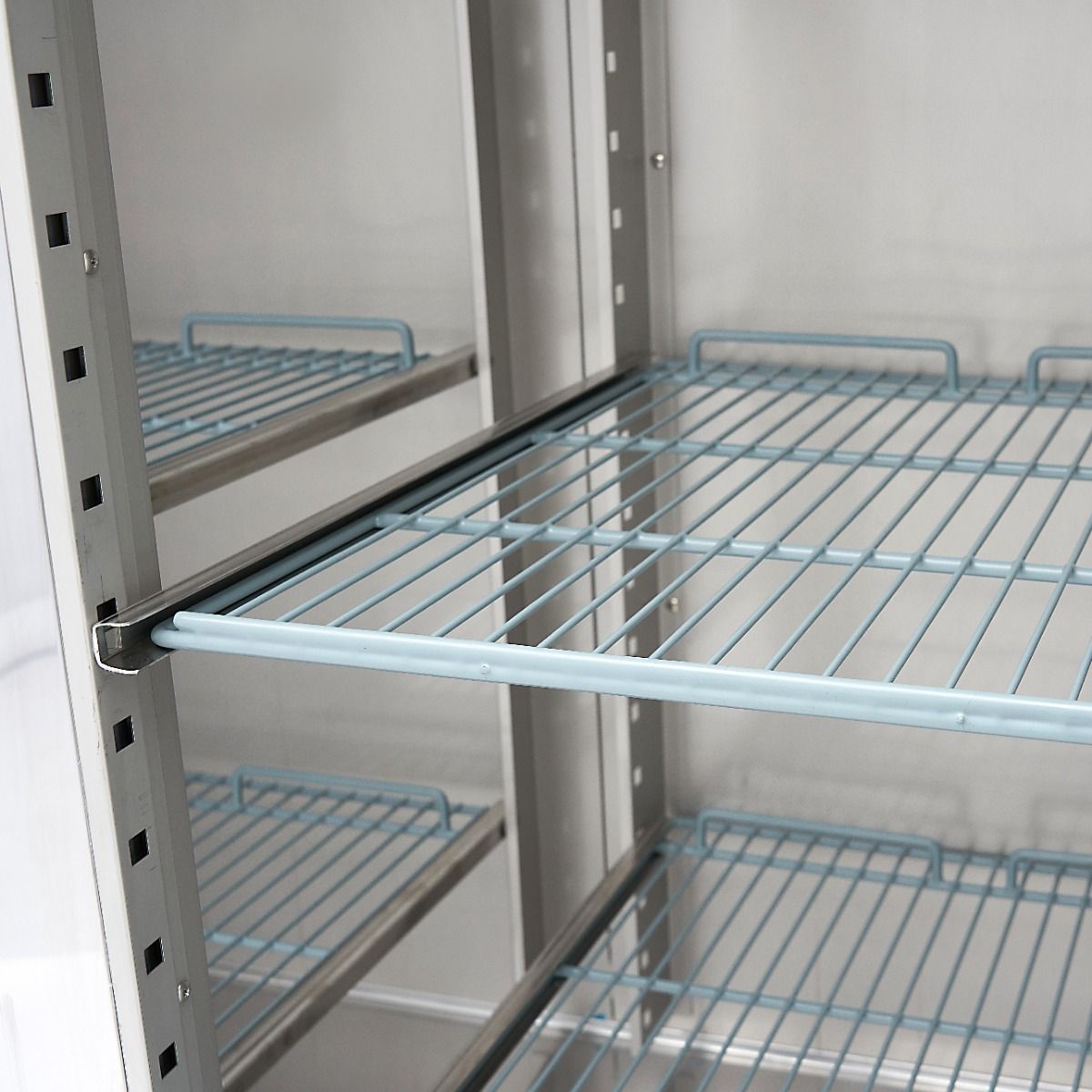 Tato mraznička z nerezavějící oceli má celkovou kapacitu 1200 l pro skladování mražených výrobků a bez problémů se hodí do většiny profesionálních kuchyní. Vnitřní prostor je vybaven energeticky úsporným LED osvětlením a šesti nastavitelnými policemi, které jsou vhodné pro nádoby 2/1 GN.