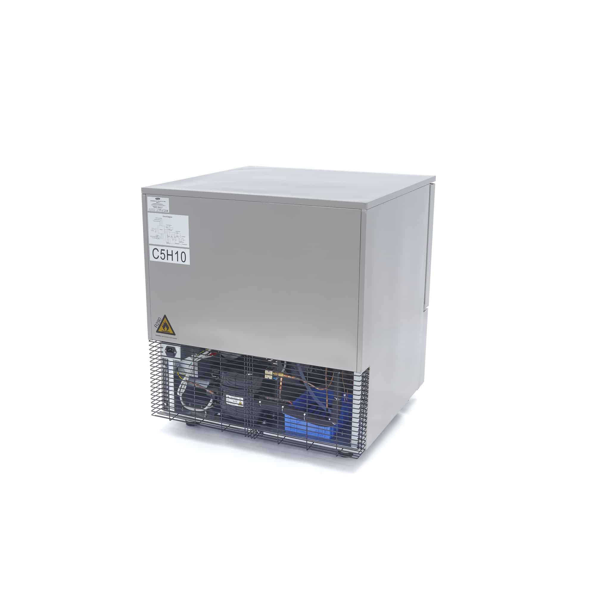 - Chladící systém sestává z vodního výparníku a použitého chladiva je R290, které neobsahuje CFC.