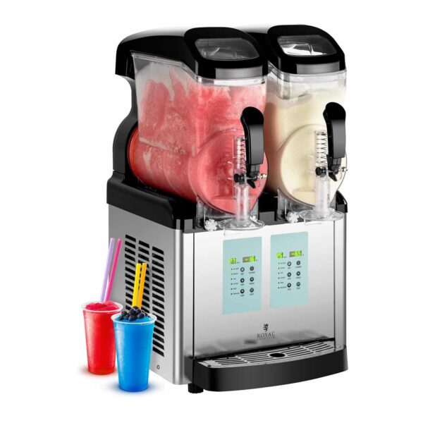 Výrobník ledové tříště RCSL 2/6ICE výrobce Royal Catering je určen pro potřeby profesionální gastronomie a je výtečným doplňkem Vašeho vybavení jak na piknicích a festivalech, tak i v kavárnách a barech. Moderní design tohoto přístroje umožňuje atraktivní prezentaci ledové tříště či jiných chlazených nápojů. Disponuje konstrukcí z trvanlivých, odolných materiálů a snadno se používá, což jsou další přednosti, díky nimž se tento výrobník ideálně hodí do gastronomických provozů.