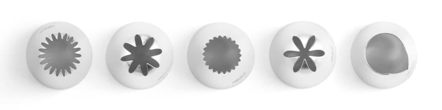Cukrářské koncovky na zdobení – sada 5 kusů | Hendi 551202 jsou ideální pro cukráře, tak pro profesionální zdobení koláčů a dortů v cukrárnách, jakož i pro zdobení koláčů a dortů doma.