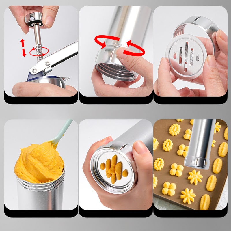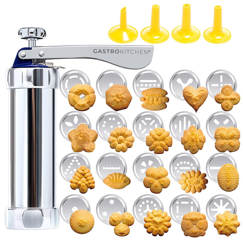 Během několika sekund promění obyčejné těsto v barevně tvarované sušenky nebo dokonale zdobené dezerty. Tělo z eloxované hliníkové slitiny se snadno plní, pohodlně mačká a díky 20 vyměnitelným diskům a 4 cukrářským tryskám nabízí desítky kreativních možností – od klasických hvězdiček až po netradiční motivy.
