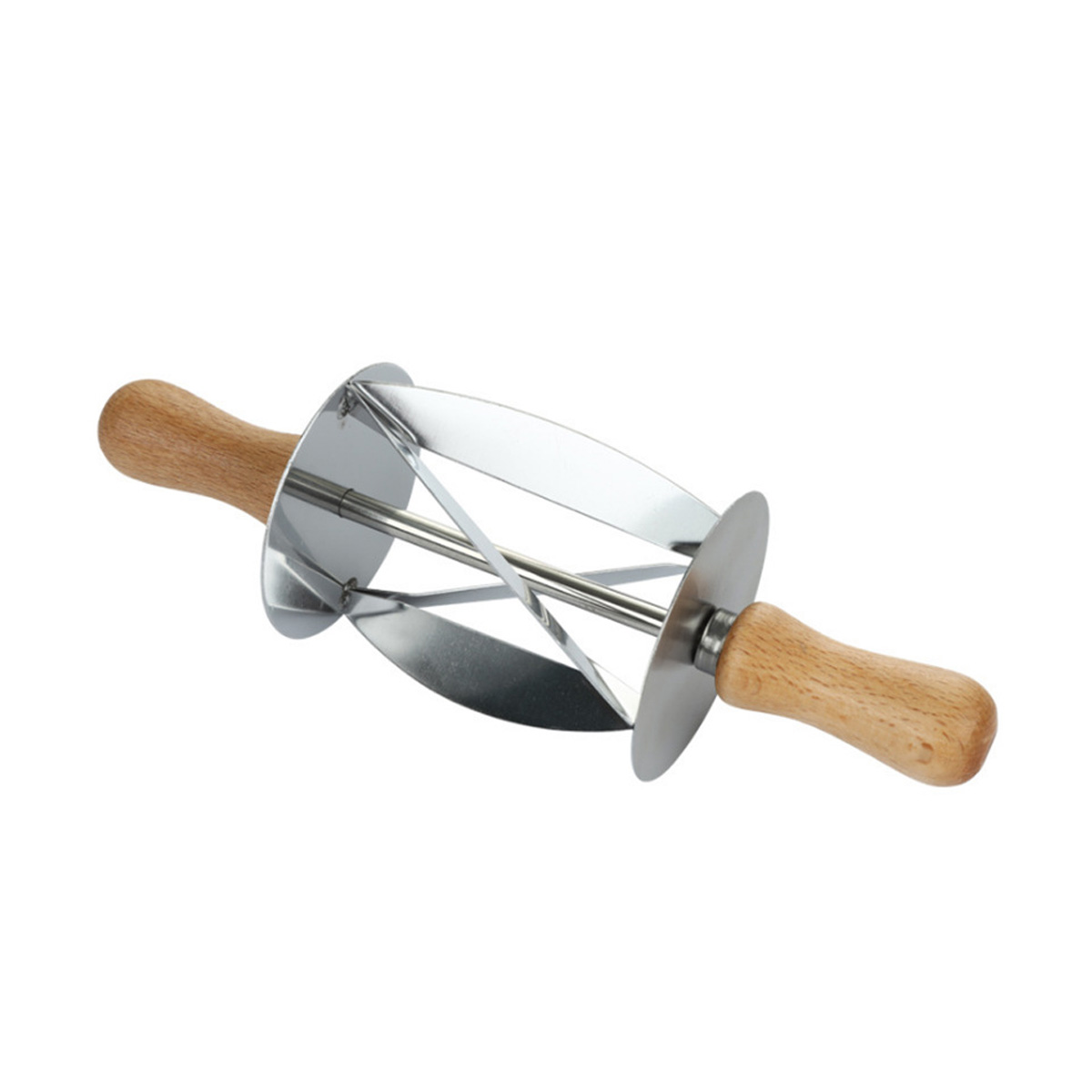 Válečkový kráječ na těsto je ideálním pomocníkem pro domácí i profesionální pekárny. Tento nástroj z nerezové oceli umožňuje snadno a rychle krájet rovnoměrné trojúhelníky těsta na rohlíky, croissanty nebo jiné pečivo. Jednoduše přejeďte válečkem po plátu těsta a hned budete mít dokonalé kousky, které můžete tvarovat. Dřevěné rukojeti poskytují pevný a pohodlný úchop, takže práce s kráječem je velmi snadná.