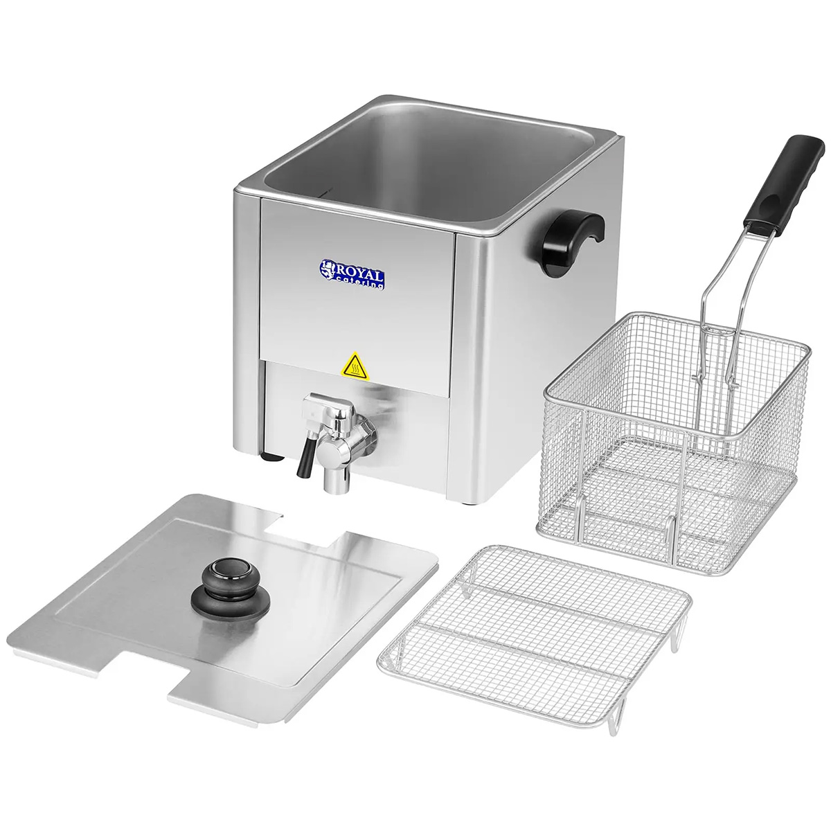 Fritéza 13 litrů RCEF 13E-EGO od společnosti Royal Catering byla koncipována pro profesionální využití. Fritéza je vyrobena z vysoce kvalitní ušlechtilé oceli, díky čemuž je odolná vůči korozi a lehce se čistí. Ve fritéze RCEF 13E-EGO je vestavěn vysoce moderní termostat německé značkové firmy E. G. O. Termostaty firmy E. G. O. patří k nejmodernějším a nejjemnějším termostatům na trhu. Výkonný topný element fritézy pracuje s 3250 W. Termostatem nastavená teplota zaručuje spolehlivost fritézy díky plně automatické kontrole stálosti teploty. Další předností je profesionální výpustný kohout s filtrem. Dodatkově bylo dbáno na to, aby byly nádržky zaoblené. To mnohanásobně ulehčí čištění. Stabilita je zaručena krajně protiskluzovými gumovými nožičkami. Aby bylo zabráněno spalování materiálu, který padá z fritovacího koše, disponuje elektrická fritéza speciálními studenými zónami na svém dně.