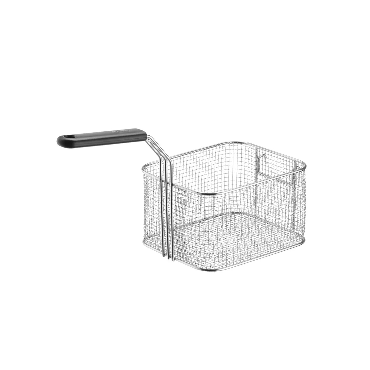 - Efektivita – jemná síťka koše zaručuje optimální cirkulaci oleje kolem surovin a rychlé odtékání přebytečného tuku po vytažení z fritézy, což přispívá k rovnoměrnému smažení