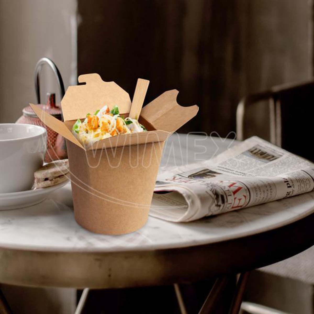 Food box (PAP/PE) – 500 ml – hnědý | 50 ks je praktický obal určený pro balení a přepravu jídel. Box je vyroben z kvalitního kraftového papíru potaženého vrstvou polyethylenu (PE), která zajišťuje jeho odolnost vůči vlhkosti a mastnotě.