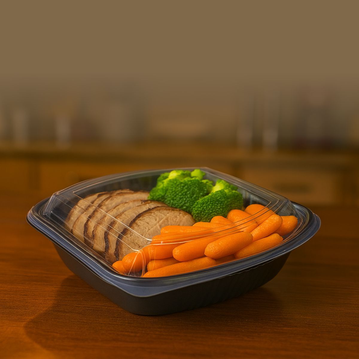 Menu miska (PP) s víčkem – nedělená – 205 × 240 × 50 mm [200 ks] představuje praktické řešení pro přepravu studených i teplých pokrmů. Díky pevnému provedení z kvalitního polypropylenu je odolná vůči vysokým teplotám, mechanickému poškození a umožňuje také pohodlný ohřev jídla přímo v mikrovlnné troubě. Pevně přiléhající víčko zabraňuje vylití a udržuje pokrmy čerstvé i během delší přepravy.