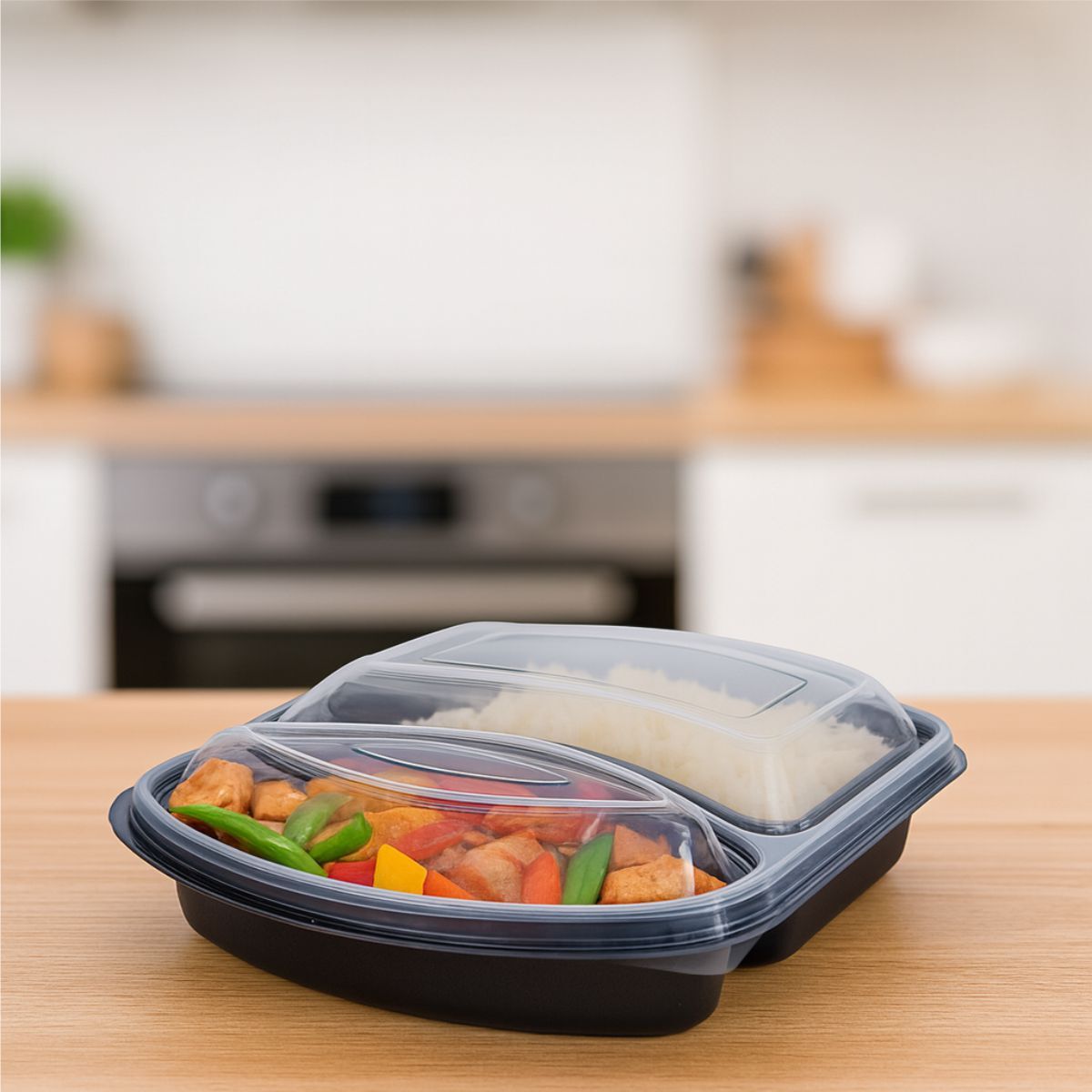 - Efektivita – dvě samostatné přihrádky umožňují oddělit hlavní jídlo a přílohu bez míchání chutí