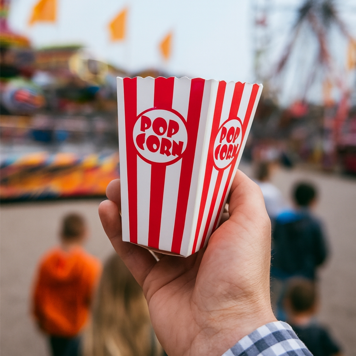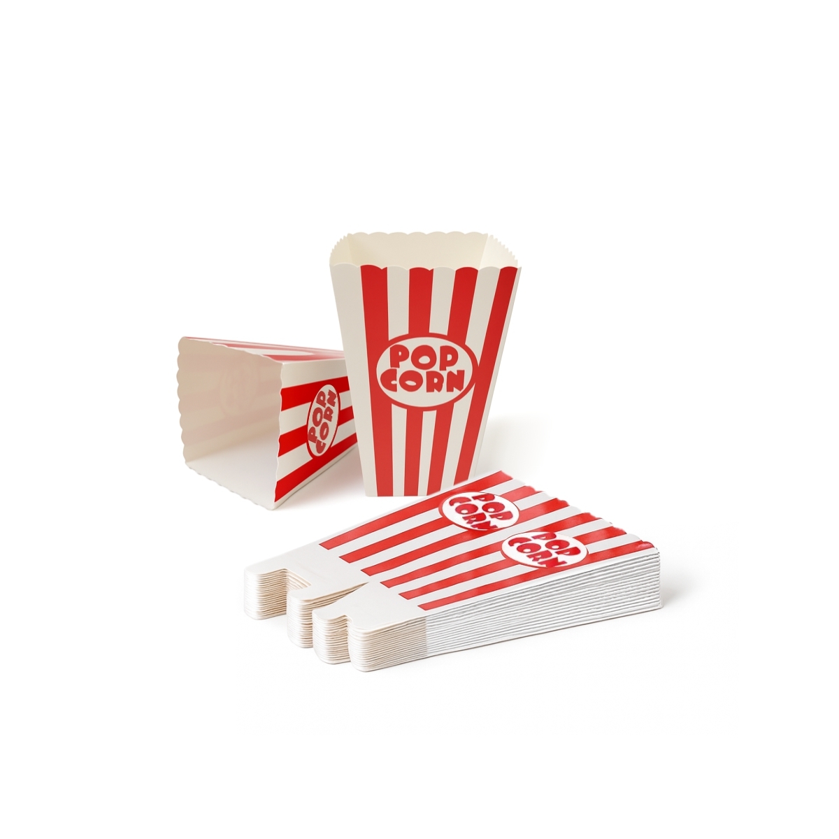 Krabičky jsou vyrobeny z kvalitního pevného papíru, který dobře drží tvar a je vhodný pro servis popcornu, křupek, sladkostí či drobných snacků. Klasický červeno-bílý design s nápisem „POP CORN“ dodává produktu retro vzhled typický pro kina a street food stánky – ideální pro dětské oči. Rozměry 5 × 7 × 11,5 cm jsou přizpůsobeny menším porcím, které se dětem dobře drží v ruce.