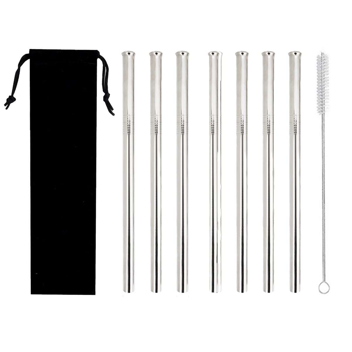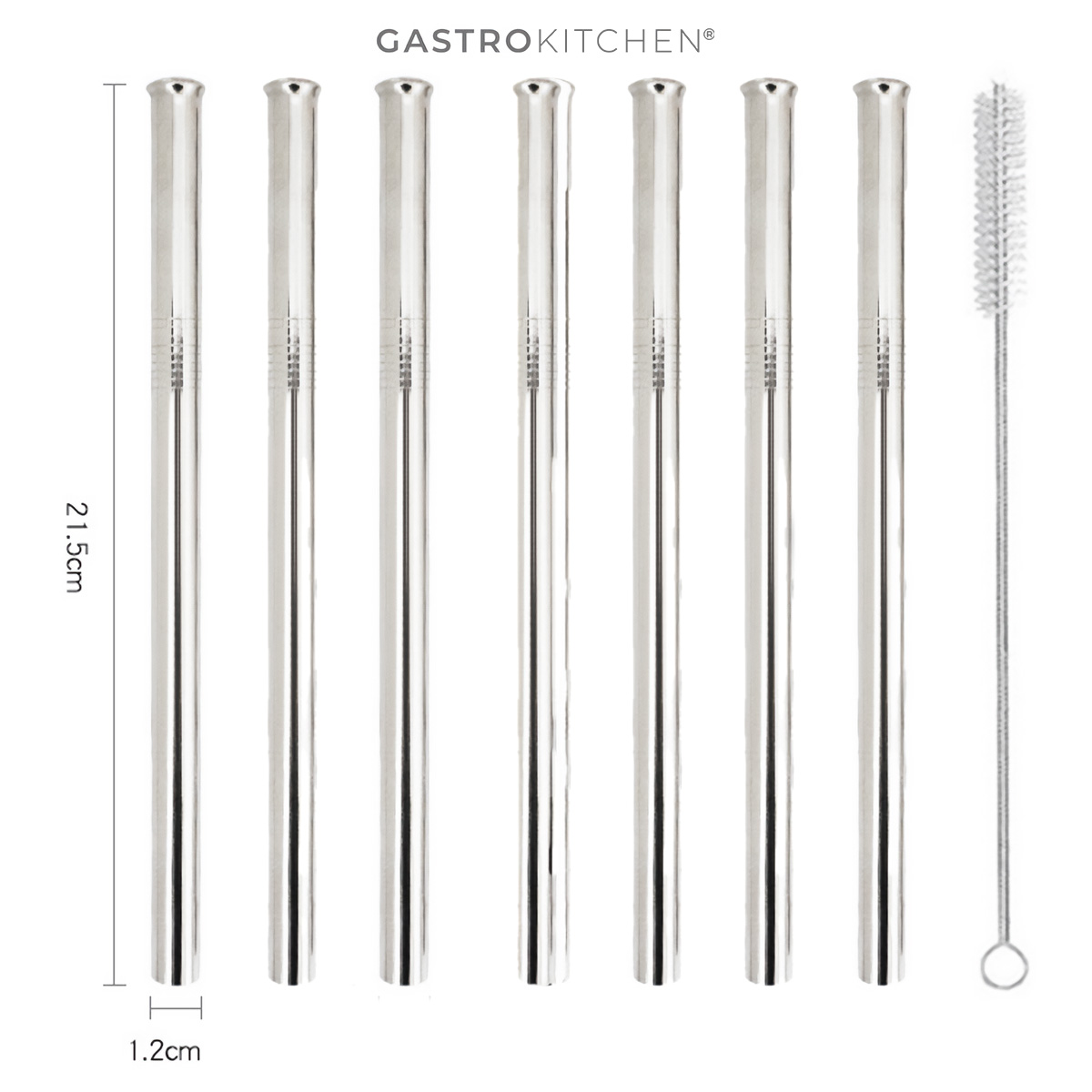 Hrubé Ø 12mm nerezové brčka s čistícím kartáčkem – set 7+1 | Gastrokitchen