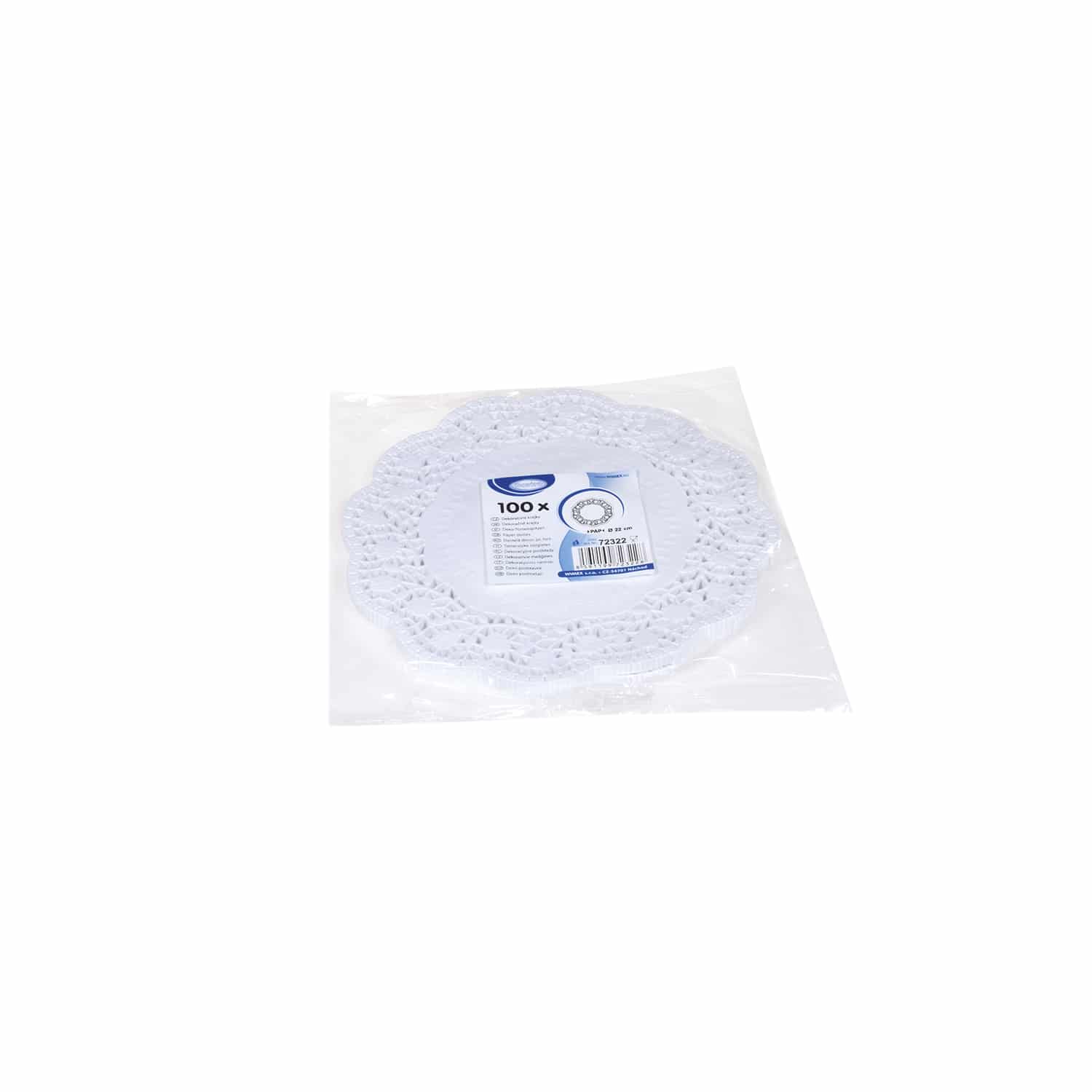 Dekorativní krajka (PAP) kulatá bílá Ø22 cm [100 ks] EAN:8591199723228,4052509723221,