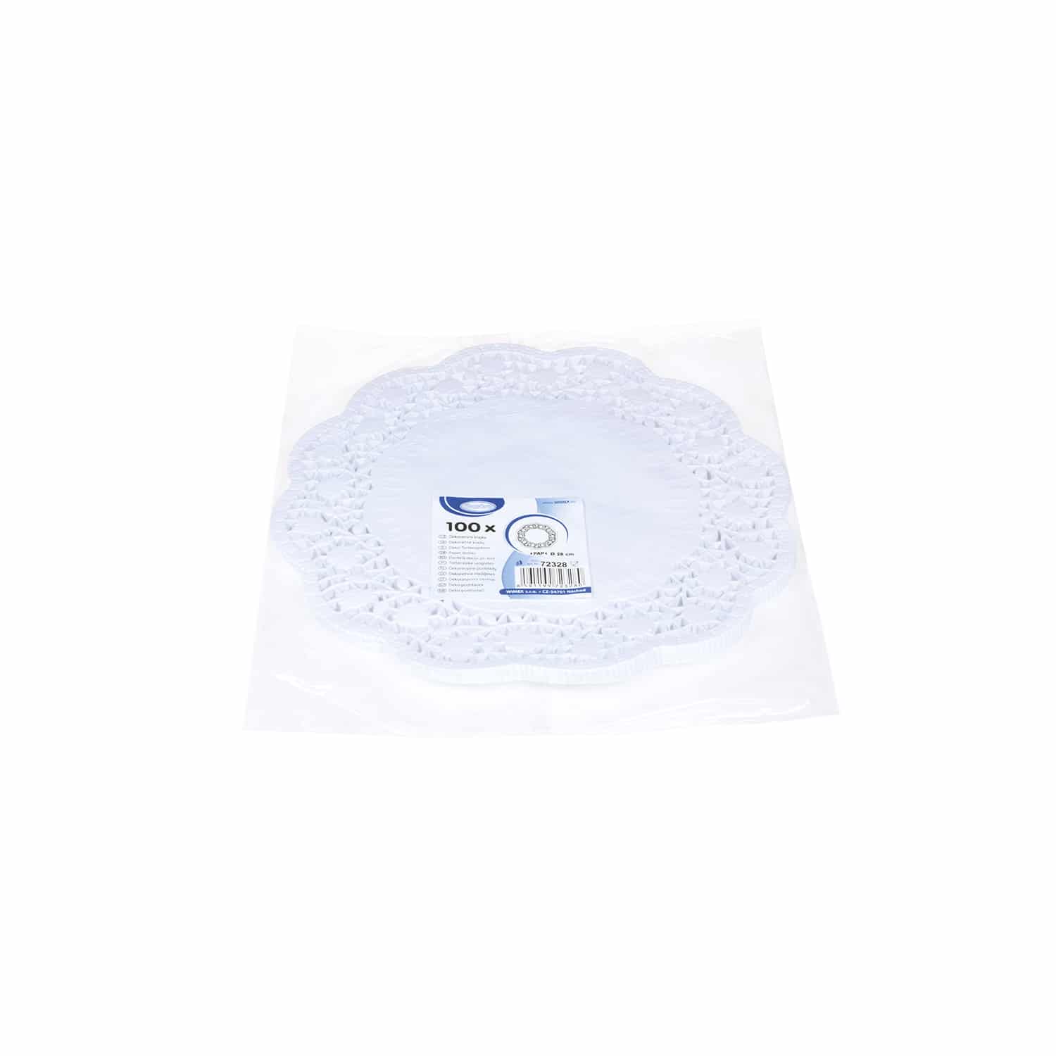 Krajky a rozetyDekorativní krajka (PAP) kulatá bílá Ø28 cm [100 ks]