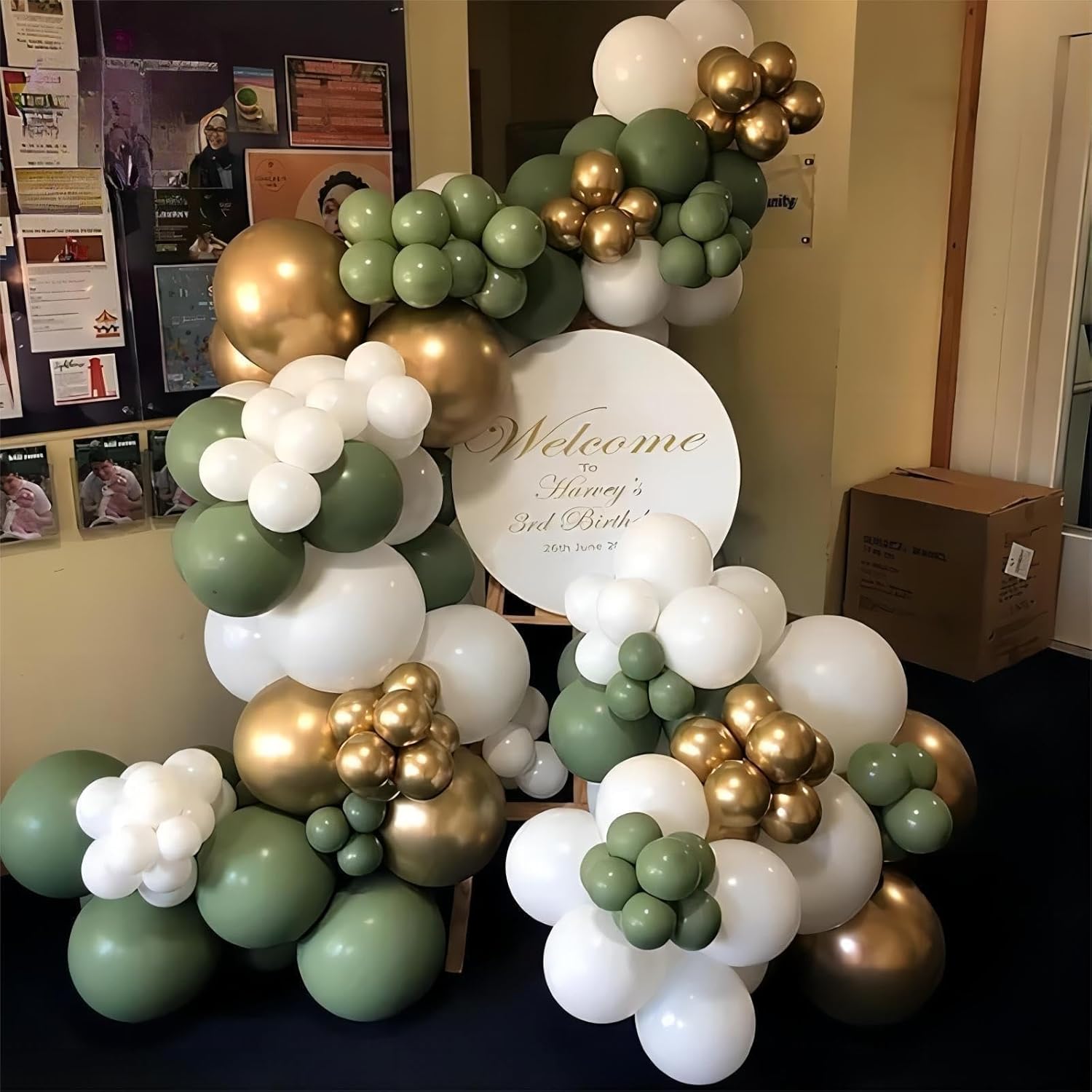 Balónová girlanda 137 ks zeleno-bílé-zlaté matné balóny | Gastrokitchen
