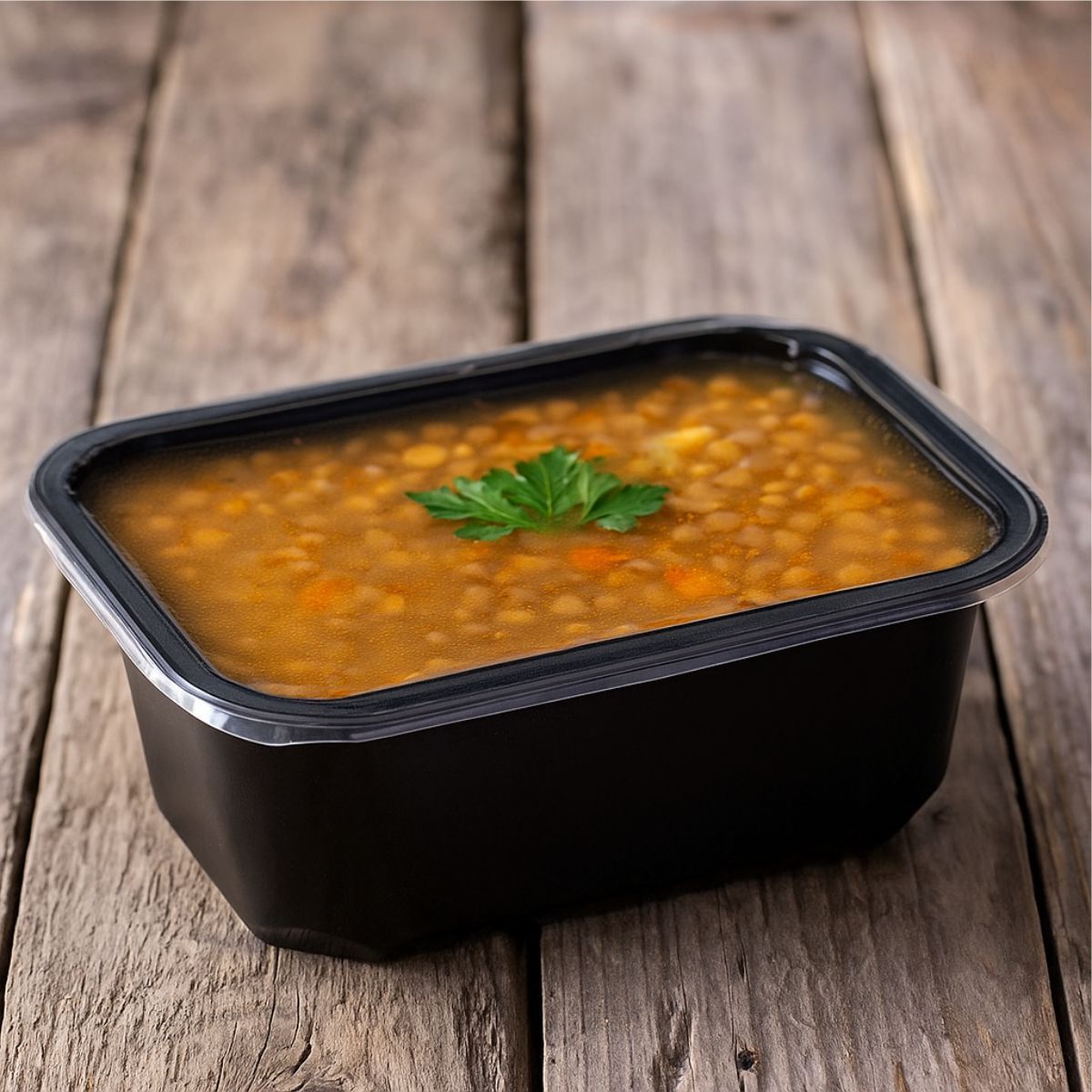 Vhodná k zatavení ochrannou fólií, která zabraňuje vylití obsahu a prodlužuje čerstvost jídla. Perfektní řešení pro restaurace, cateringové služby a donášková jídla.