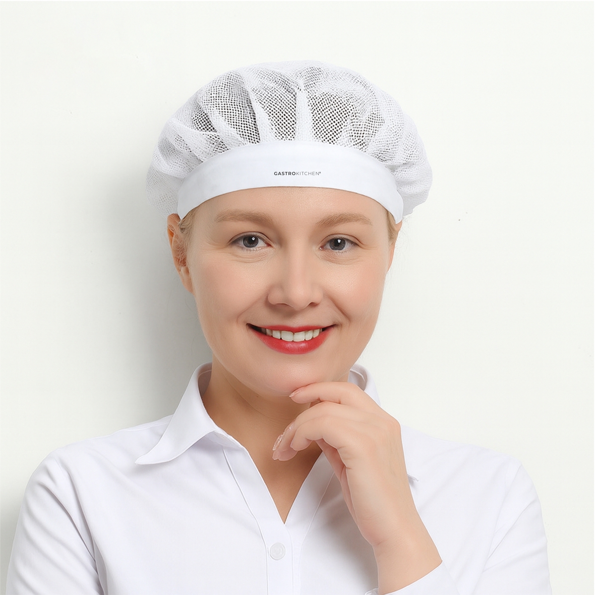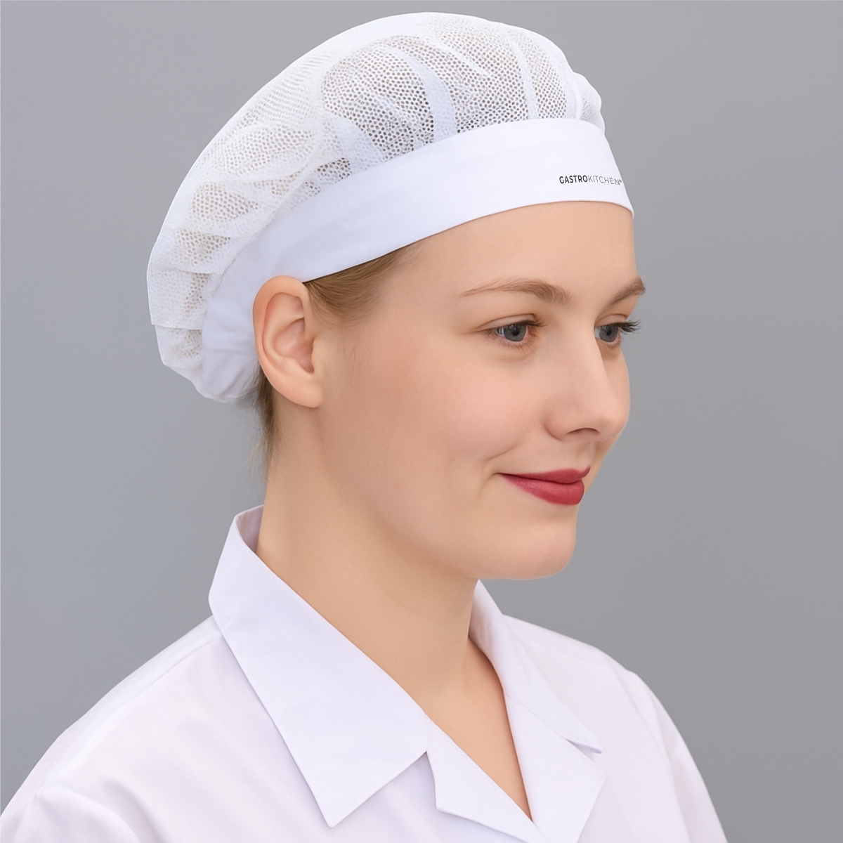 Kuchařská čepice s čelenkou – síťovaná – bílá – univerzální | Gastrokitchen