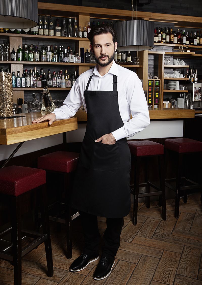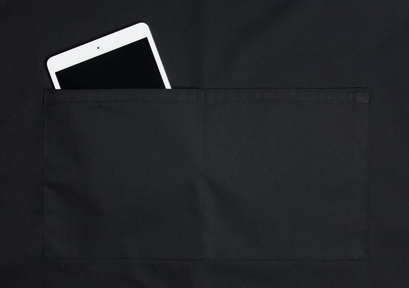 Číšnická zástěra Basic, černá 75 x 90 cm s nastavitelným popruhem na krk najde uplatnění v různých gastro provozech. Popruh na krk je nastavitelný plastovou přezkou v rozmezí 40 – 75 cm.