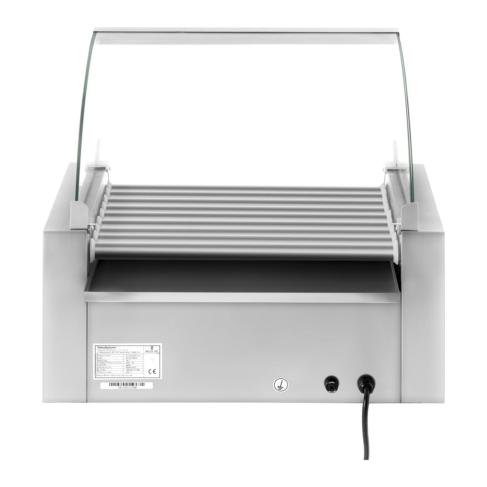 Opékač párků nabízí s 9 automaticky otočnými topnými válci o délce 46,5 cm dostatek místa až na 16 párků, nebo na veliké klobásy, takže můžete horké párky nabízet i při veliké poptávce. Teplota grilovací plochy může být řízena odděleně vzadu a vepředu s výkonem 2.200 W v rozmezí od 0 do 250 ° C. Díky tomu mohou být párky ohřáty současně na požadovanou teplotu, nebo mohou být po delší dobu udržovány teplé.