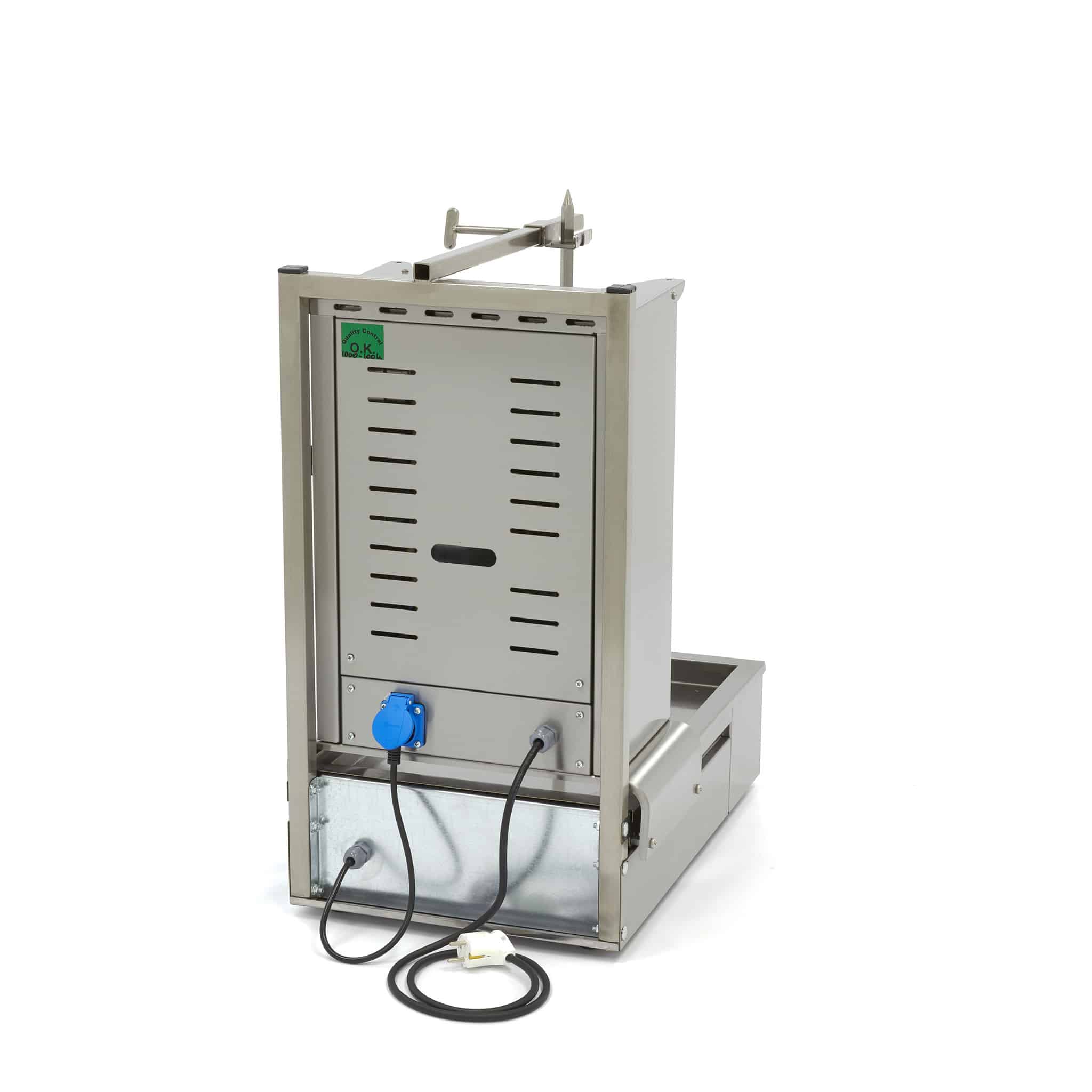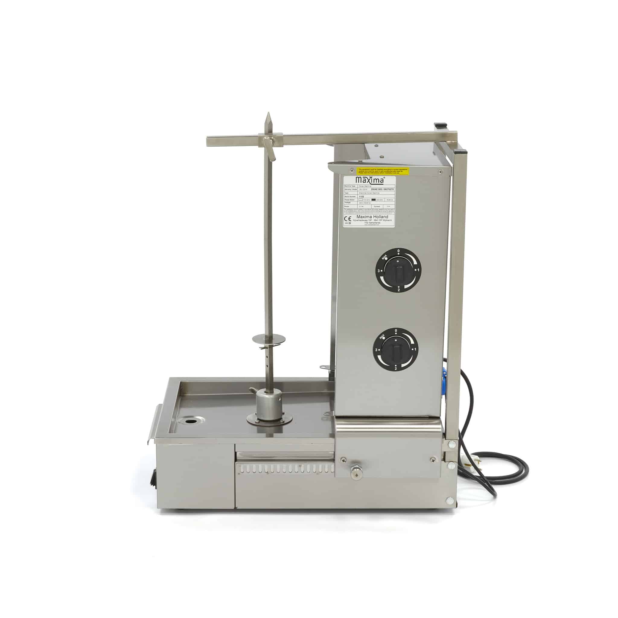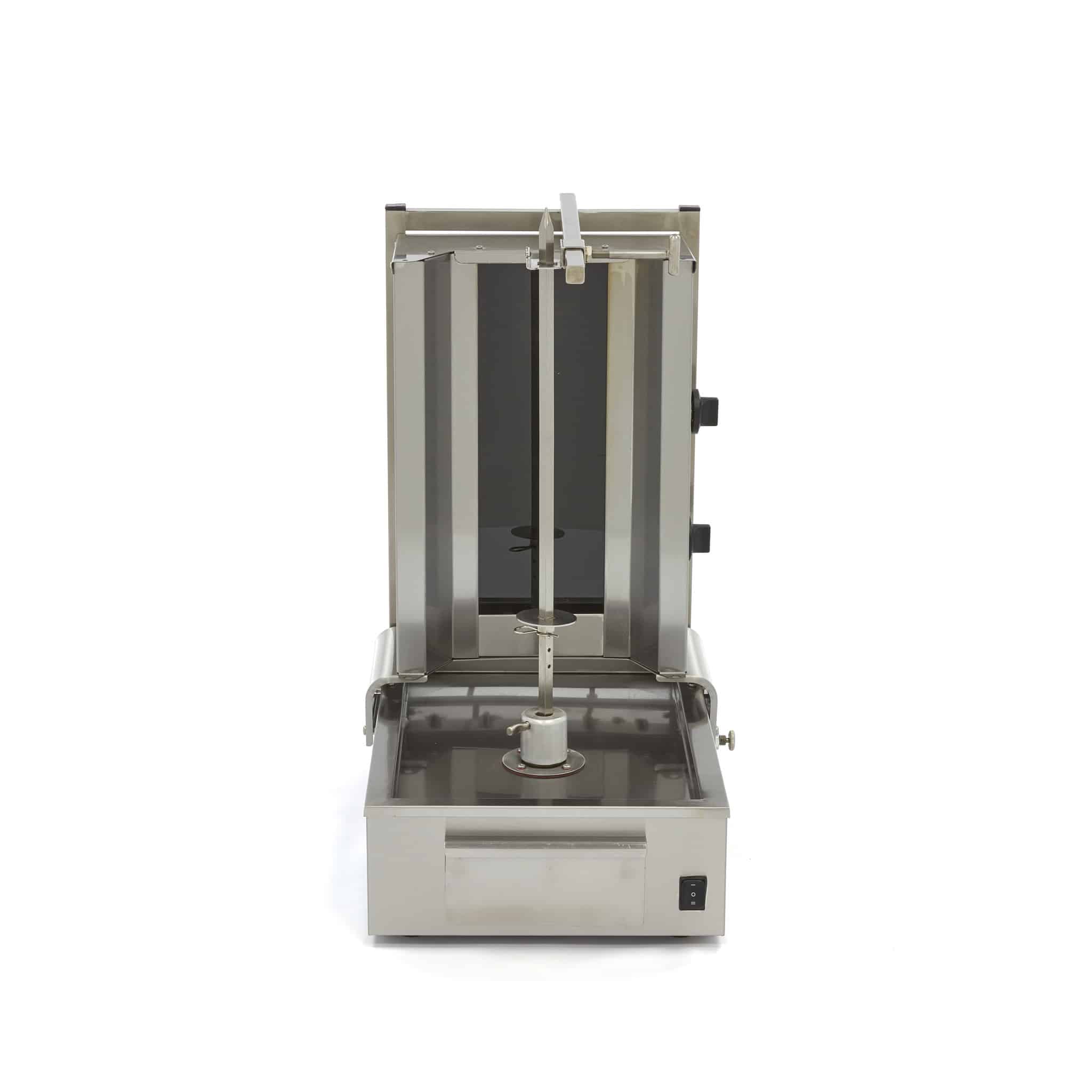 Gril na kebab – 2-hořákový – elektrický – s motorem dole | Maxima má 2 elektrické hořáky. Gril je ideální pro výrobu chutných gyros, kebabů nebo shawarmy. Tento model je standardně vybaven odkapávací miskou z nerezové oceli.