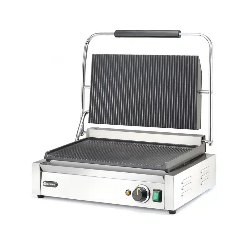 Kontaktní gril Panini XL – 2700 W – 230 V | Hendi 263624 značky Hendi je ideální pro tepelné zpracování masa, zeleniny a chleba. Výkonné ohřívače umožňují efektivní a rychlou přípravu jídel.