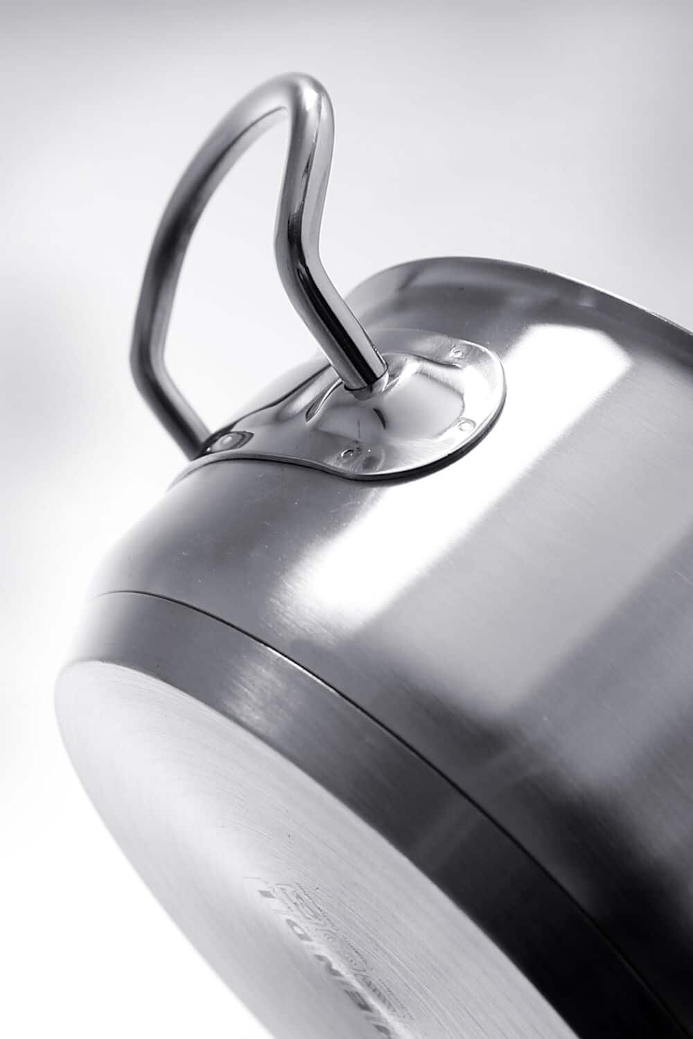 - Kombinuje vlastnosti hliníku s odolností a magnetické nerezové oceli umožňující indukční vaření