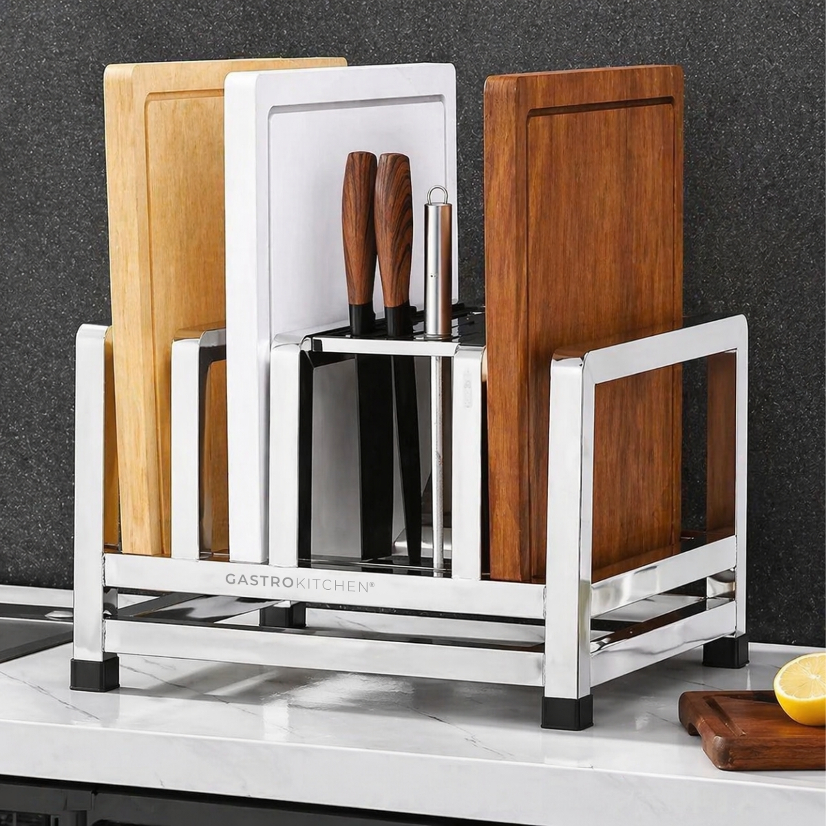 Nerezový stojan na krájecí desky a nože | Gastrokitchen