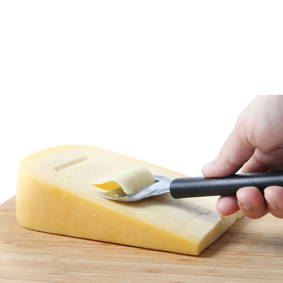 - Efektivita – speciálně tvarovaná čepel umožňuje plynulé krájení sýra na rovnoměrné plátky, ideální pro bufetové stoly nebo sýrové mísy