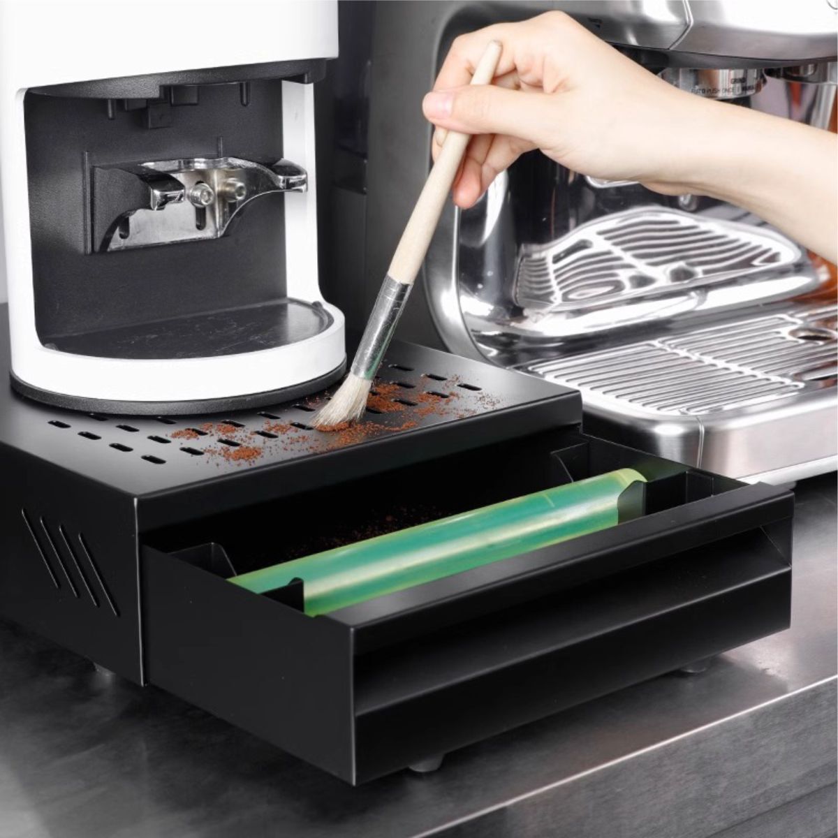 Odklepávací zásuvka na kávu – černá je elegantní a praktické řešení pro každého baristu. Slouží k odstraňování použitých kávových usazenin po extrakci, přičemž zachovává čistotu a pořádek na pracovní ploše.