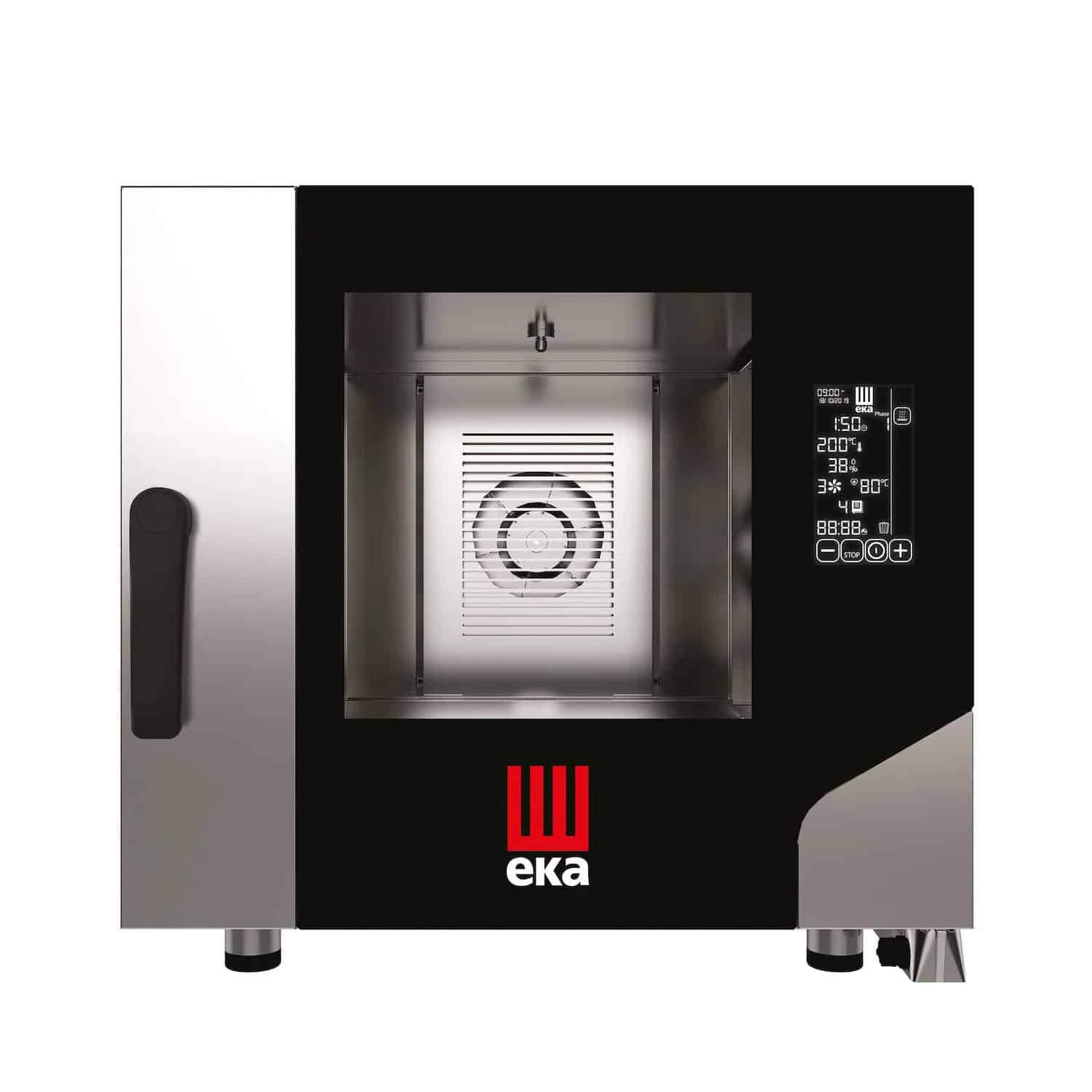 - Tři rychlosti ventilátorů od 1500 do 2800 ot./min – třístupňové ovládání otáček ventilátoru zajišťuje přizpůsobení proudění vzduchu potřebného pro vaření a rovnoměrnou teplotu v celé komoře. Výkon ventilátoru: normální, semistatický, ½ výkonu