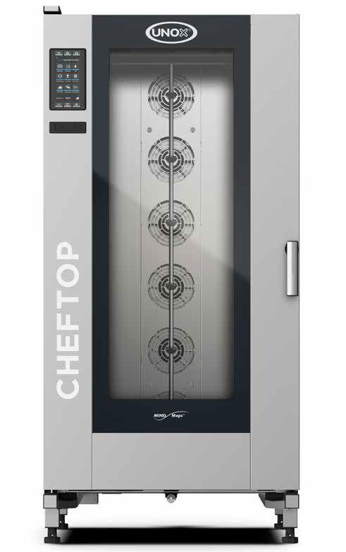 Plynový parní konvektomat UNOX ChefTop MindMaps Plus 40x GN 1/1 nebo 20x GN 2/1 je to moderní kuchyňské zařízení zvláště doporučené pro profesionální gastronomii. Konvektomat umožňuje přípravu v suchém, horkém vzduchu nebo s využitím funkce páry.