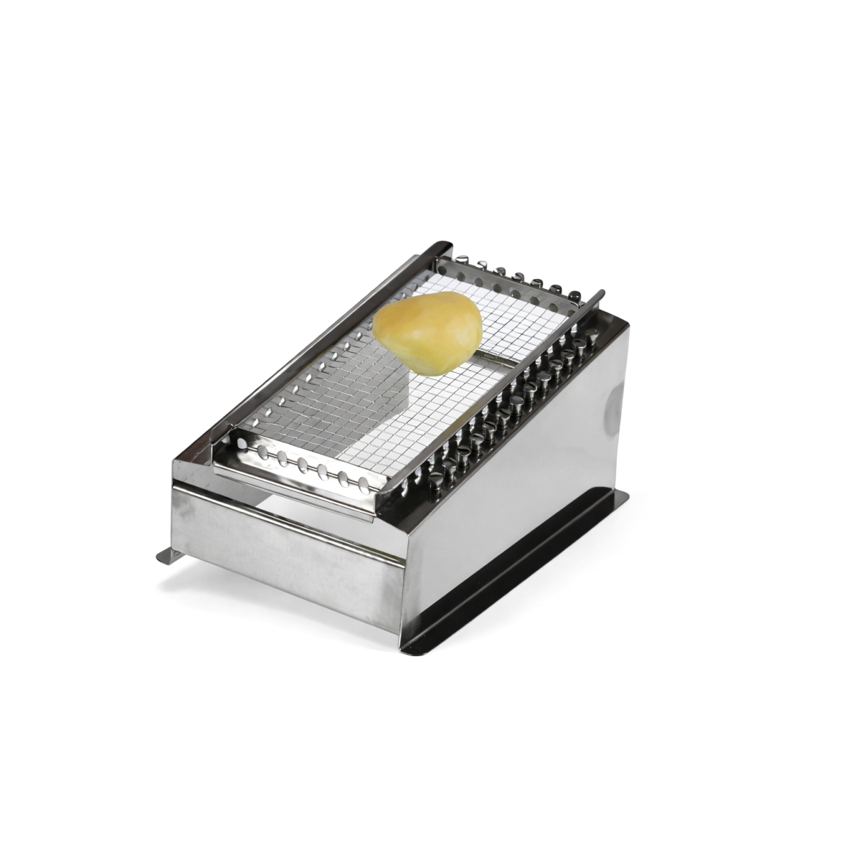 Kráječ na vařené brambory – 25×12 cm | 4218.06 je praktický kuchyňský nástroj navržený pro rychlé a přesné krájení vařených brambor do salátů, pyré nebo jiných bramborových příloh. Díky robustní konstrukci z nerezové oceli je ideální pro restaurace, jídelny, bufety i další gastro provozy. Kráječ je vybaven mřížkou s oky 8×8 mm, která zajišťuje přesné a rovnoměrné krájení. Stabilní konstrukce s pevným vedením umožňuje pohodlné, rychlé a bezpečné používání i při přípravě většího množství porcí.