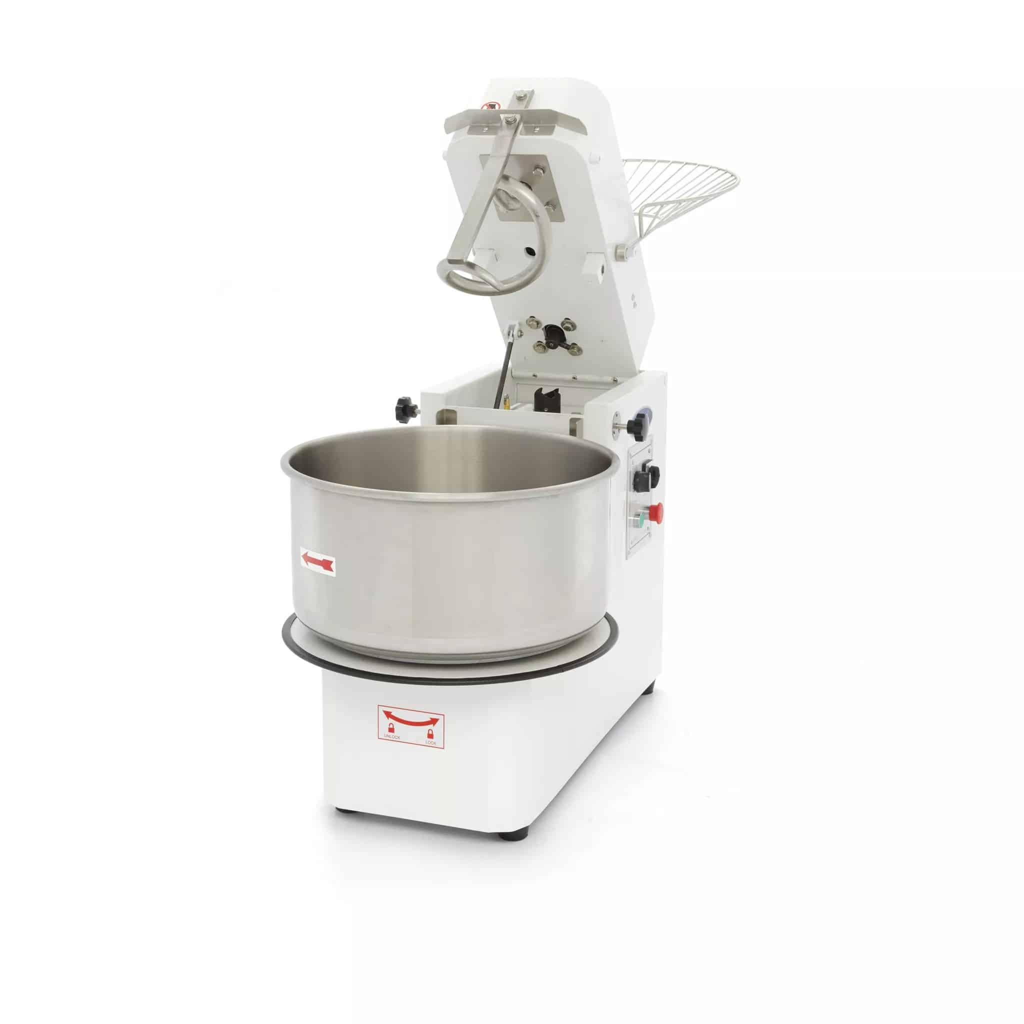 Ruční hnětení velkého množství těsta zabere spoustu času a ruční práce. Pokud investujete do tohoto profesionálního mísiče na těsto ve vaší kuchyni, bez problémů uhnětete až 30 kg těsta. Nádoba na míchání má objem 51 litrů a podobně jako hák na těsto se také otáčí kolem své osy, díky čemuž je ideální pro hnětení těsta na chléb nebo pizzu.