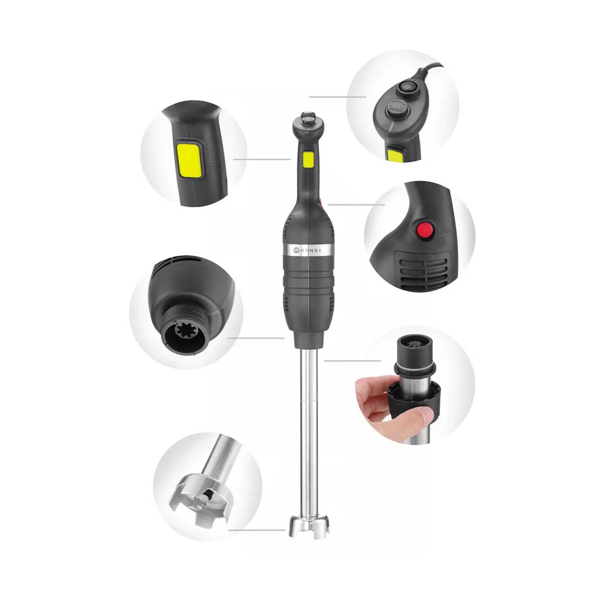 Tyčový mixér 500 W – Ø 100×916 mm | Hendi 221341 s výkonem až 16 000 ot./min. je praktický pomocník, který by neměl chybět v žádné profesionální kuchyni.