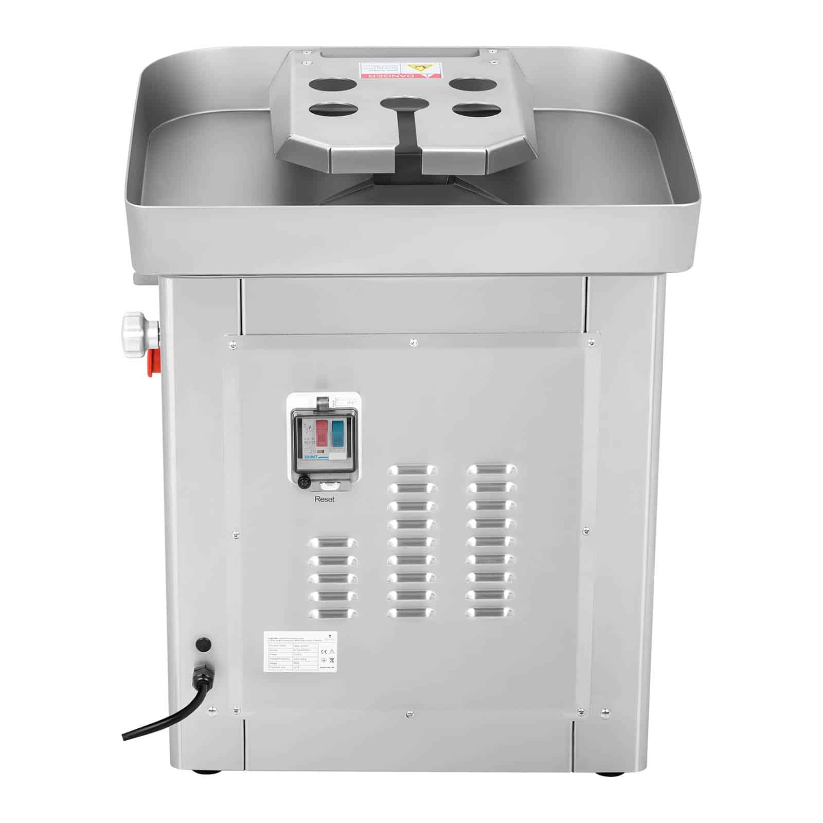Bezpečnosť stroje je zaručena ochranným systémem, který automaticky vypne motor, když dosáhne příliš vysokou teplotu. Kromě toho je mlýnek na maso vybaven zpátečkou, což je praktické v případě ucpání; umožňuje vám to pokračovat v práci. Knoflík má tři polohy – “0” pro vypnutí stroje, “1” pro frézování a “2” pro zpětný chod – obsluha zařízení je jednoduchá a rychlá.
