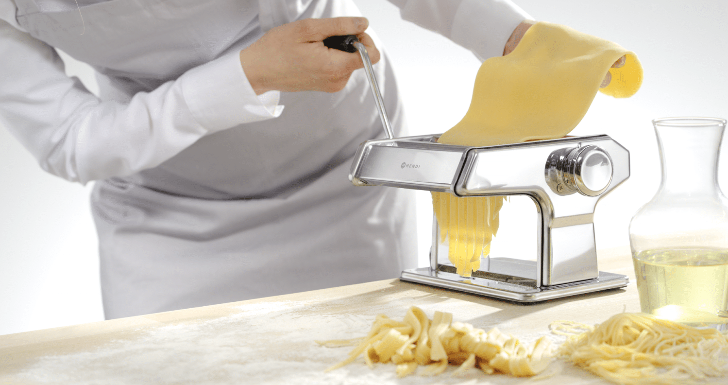 Ruční stroj na výrobu těstovin | Hendi 224830 je ideální pro přípravu čerstvých těstovin a obsahuje držadlo a držák pro upevnění na stůl.