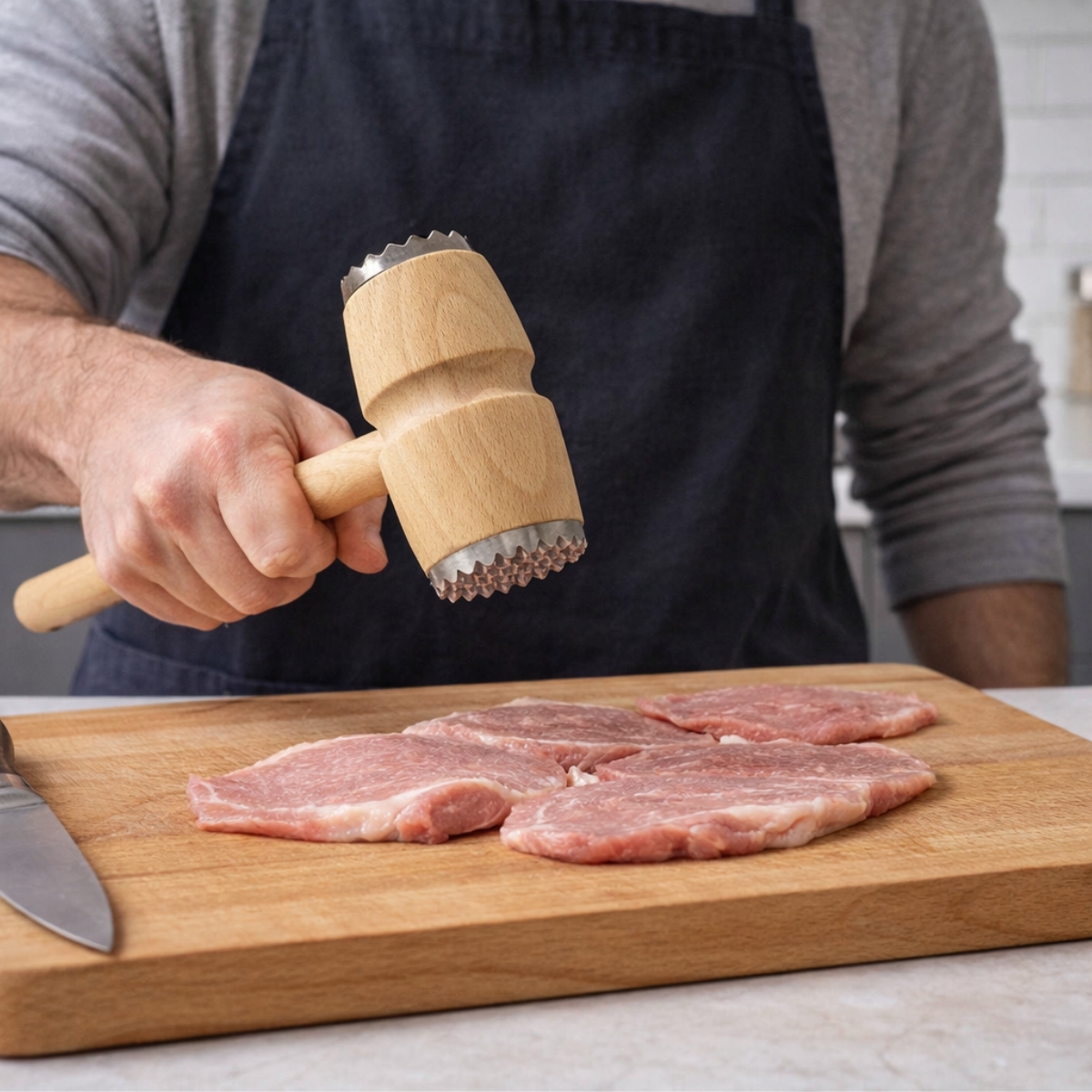 Dřevěná palička na maso je praktickým pomocníkem při přípravě různých druhů masa. Je vyrobena z bukového dřeva a doplněna o oboustranné kovové zakončení, díky čemuž umožňuje pohodlné a efektivní naklepávání masa před další úpravou.