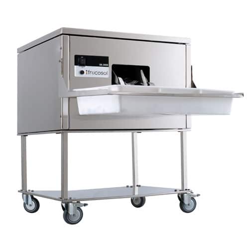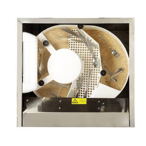 Leštička příborů Frucosol SH3000 obsahuje UV lampu, kterou jsme do stroje nainstalovali a ta pomáhá sterilizovat příbory během procesu.