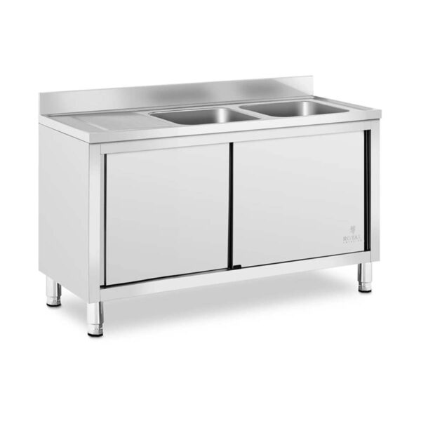 Kuchyňská skříňka – 2 dřezy – 500x400x300 mm | RC-IKS01 byla navržena pro mytí, oplachování a dezinfekci kuchyňského nářadí a pod. Hodí se pro použití v restauracích, barech, hotelech, kavárnách, školách, nemocnicích a laboratořích.