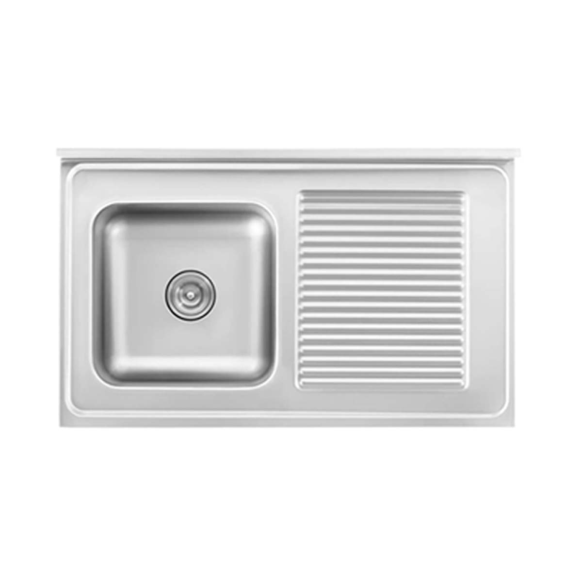 - Na levé straně skříňky je dřez o rozměrech 400x400x240 mm, který je ideální pro mytí hlubokých hrnců nebo plechů na pečení. Vysoké stěny dřezu chrání před postříkáním okolí. V odtoku je sítko, které zabraňuje ucpávání potrubí zbytky jídla.