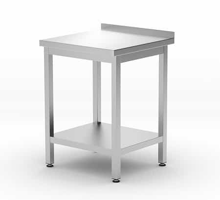- Nerezový stůl s velkou pracovní plochou a zadním lemem, který chrání stěnu před znečištěním.
