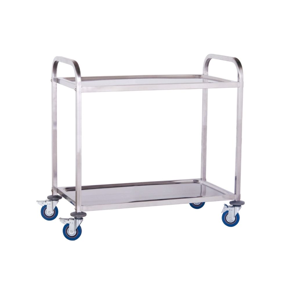 Servírovací vozík z nerezové oceli RCSW 2 značky Royal Catering byl navržen pro vysoké nároky restauračních provozů. Přesvědčí dvěma vysoce kvalitními odkládacími plochami z tvrzené ušlechtilé oceli, které odolají zatížení až 160 kg a dají se rychle, jednoduše a důkladně vyčistit. Tím se servírovací vozík hodí pro použití v různých oblastech, jako např. ve velkých kuchyních, nemocnicích, řeznictvích, pekařstvích a jídelnách. Zakupte levný nerezový servírovací vozík RCSW 2 značky Royal Catering.