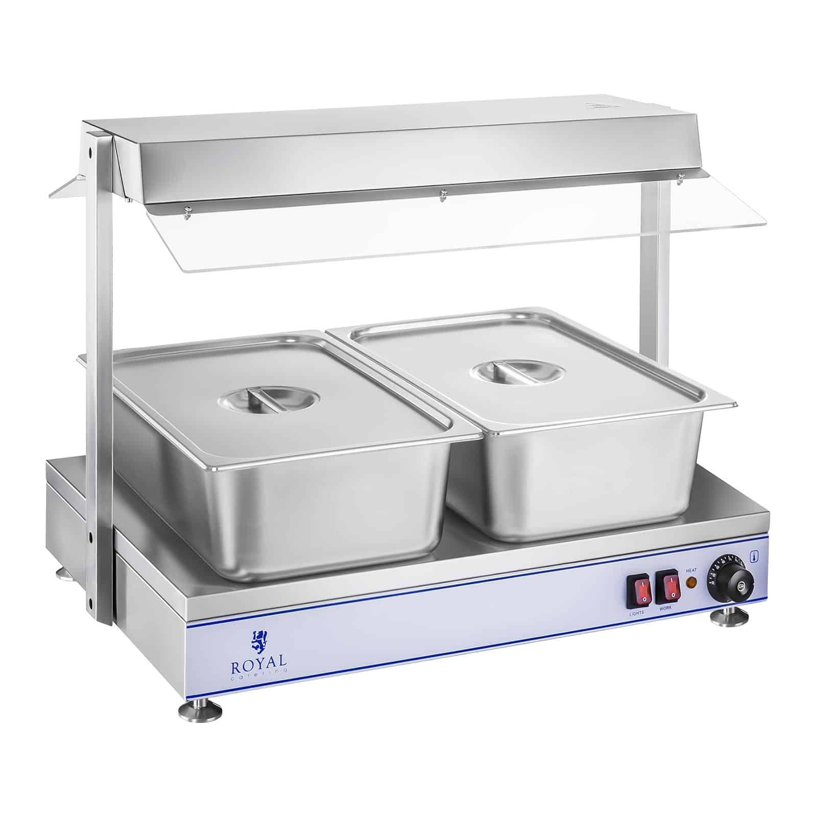 Již na první pohled přesvědčí ohřívací deska RCHP-70 svým vysoce kvalitním zpracováním z ušlechtilé oceli. Na delší udržování teploty pokrmů je Vám k dispozici celková varná plocha 70 x 50 cm. Současně se vyznačuje svou kompaktností a hodí se bez problémů na pracovní plochy, na kterých je málo místa. Potraviny jsou chráněné dvěma plexiskly na nástavbách na obou stranách.