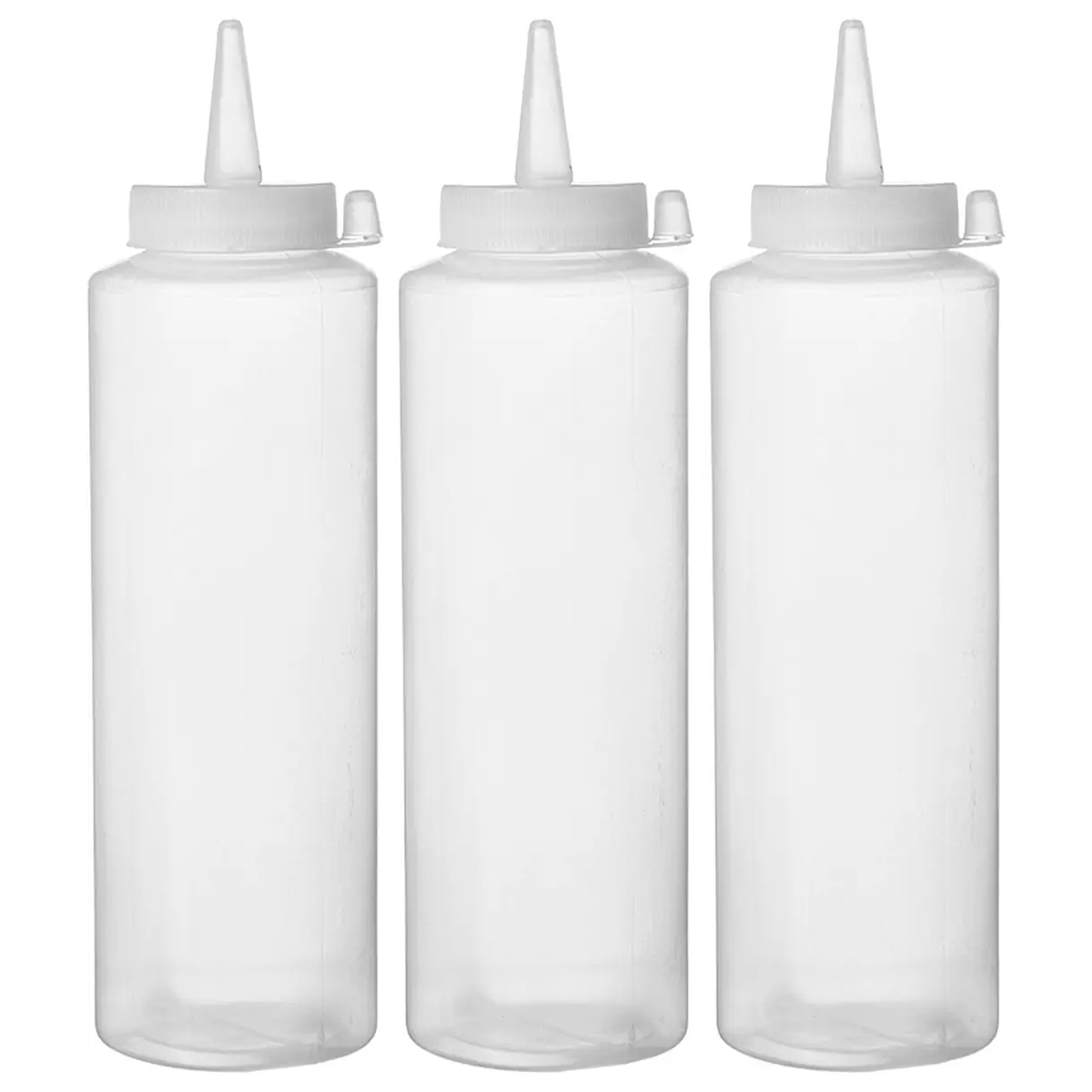 Sada 3 ks dávkovačů na studené omáčky – 0,7 L | Hendi 557952 je praktické řešení pro efektivní a hygienické dávkování omáček v gastro provozech. Průhledné lahve umožňují snadnou kontrolu obsahu a díky dávkovací špičce zajišťují přesné servírování omáček bez zbytečného rozlití. Dávkovače jsou ideální volbou pro restaurace rychlého občerstvení, bary, bufety, street food i domácnosti.