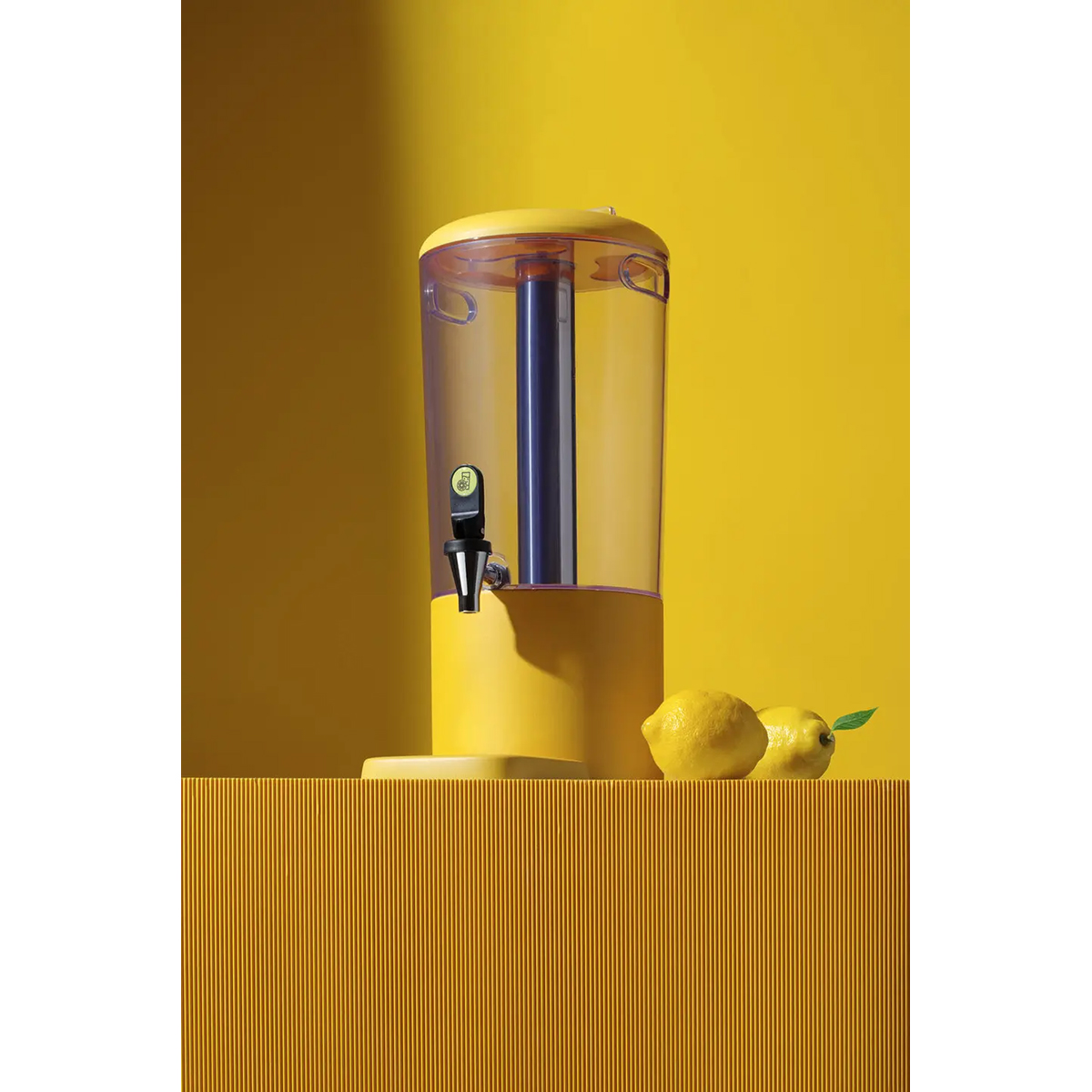 Dávkovač džusu UNIQ – 8 L – 318×216 mm | Hendi 425039 je praktický a designově výrazný dávkovač studených nápojů pro snídaňové bufety, hotely, catering a samoobslužné provozy. Transparentní nádoba v kombinaci se žlutou základnou a víkem nabízí atraktivní prezentaci džusů, limonád či ochucené vody.