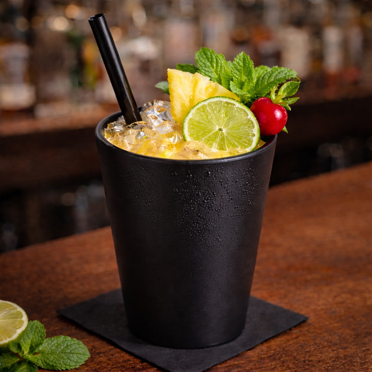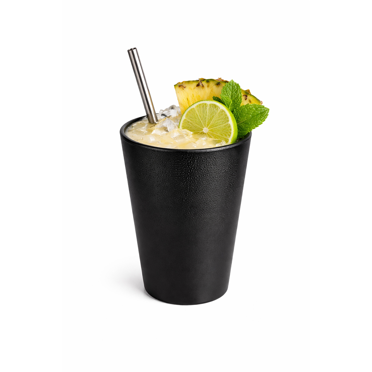 Elegantní skleněná sklenice Gastrokitchen s užitným objemem 270 ml je praktickým řešením pro servírování drinků, koktejlů, limonád a dalších studených nápojů. Matné černé provedení vytváří výrazný kontrast, který zvýrazní barvu nápoje i dekorace.